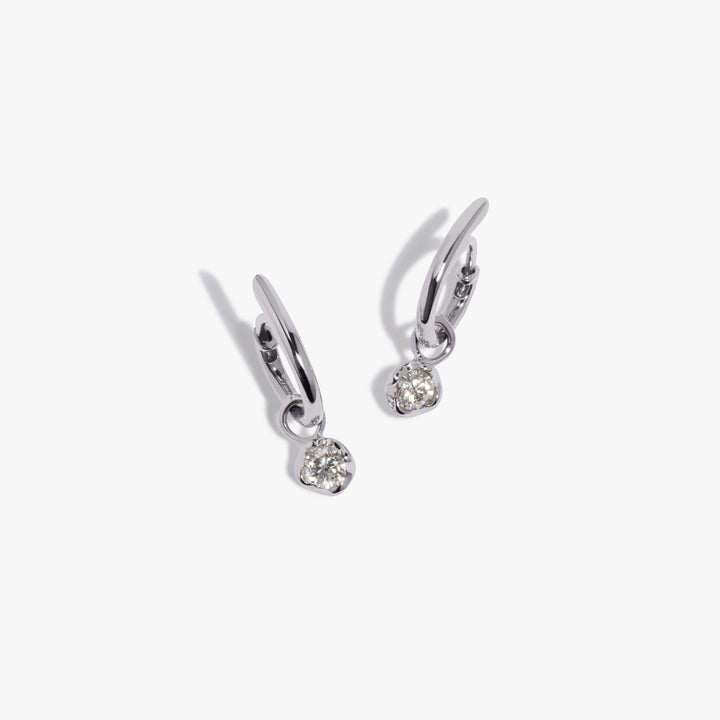 Handcrafted in 14k and 18k white gold with two 0.20ct diamonds. Features six hoops and detachable Whoopsie Daisy drops.