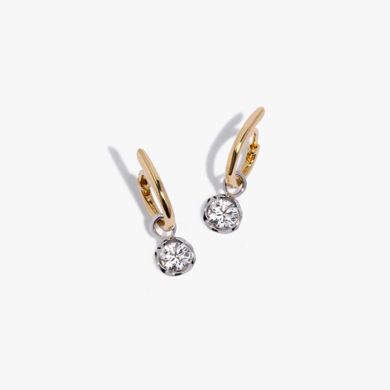 Handcrafted in 14k yellow gold and 18k white gold with two 0.70ct diamonds. Features six hoops and detachable Whoopsie Daisy drops.