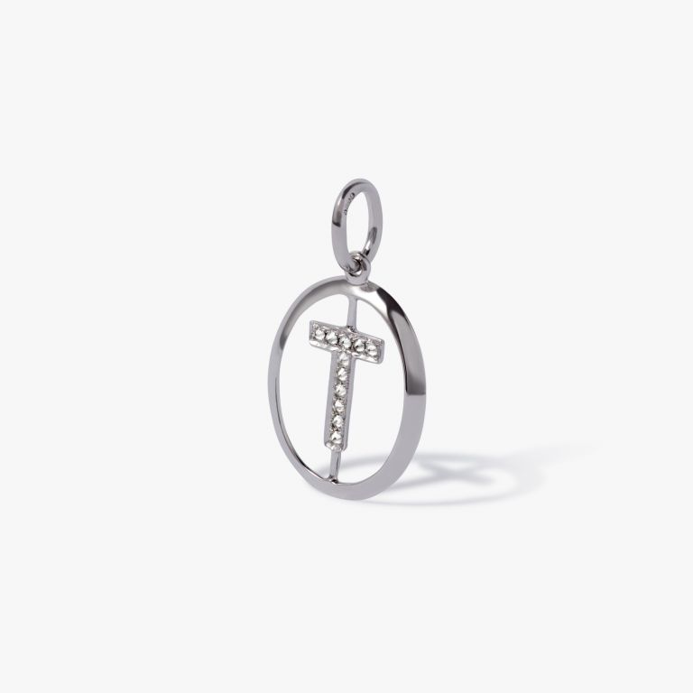 This Initials T Pendant by Annoushka blends personal meaning with sculptural form. Rendered in gleaming white gold, it features reverse-set diamonds that give depth and sparkle. Whether it signifies your own story or a loved one’s, it becomes a signature statement when styled with a fine white gold chain.