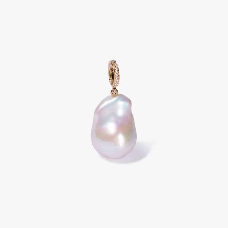 This Baroque Pearl Charm Pendant by Annoushka is a luxurious celebration of individuality and wisdom. Featuring a unique baroque pearl cradled in 18k yellow gold with delicate brown diamond accents, this pendant evokes purity and elegance through its organic form. Designed to be worn on a chunky chain as a lariat or layered among your most beloved charms, it's a timeless piece that honors natural beauty.