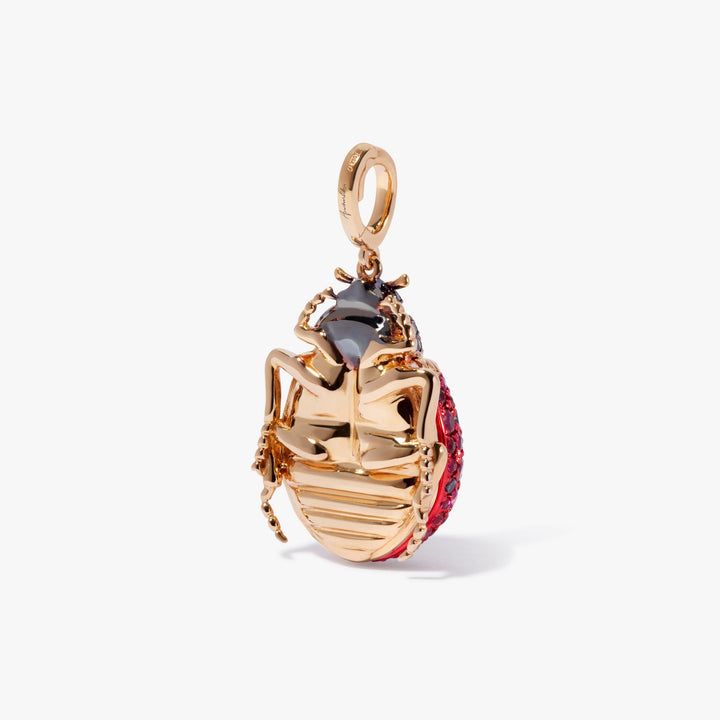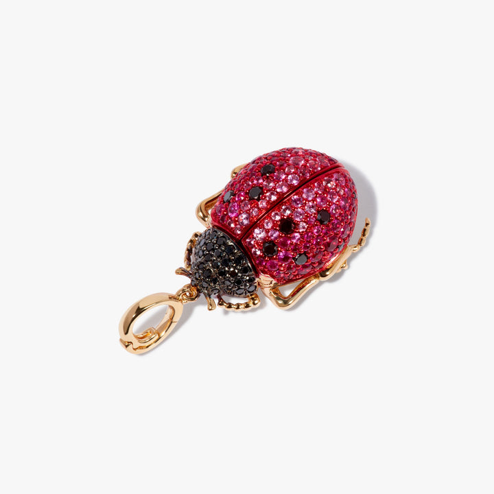This Mythology Ladybird Locket Charm Pendant by Annoushka is a joyful symbol of luck and transformation. Crafted in rich yellow gold with ruby, pink sapphire, and black diamond accents, the ladybird’s wings open to reveal a delicate locket—perfect for holding a personal token. A whimsical yet meaningful charm to wear on the 18k Charm Necklace.