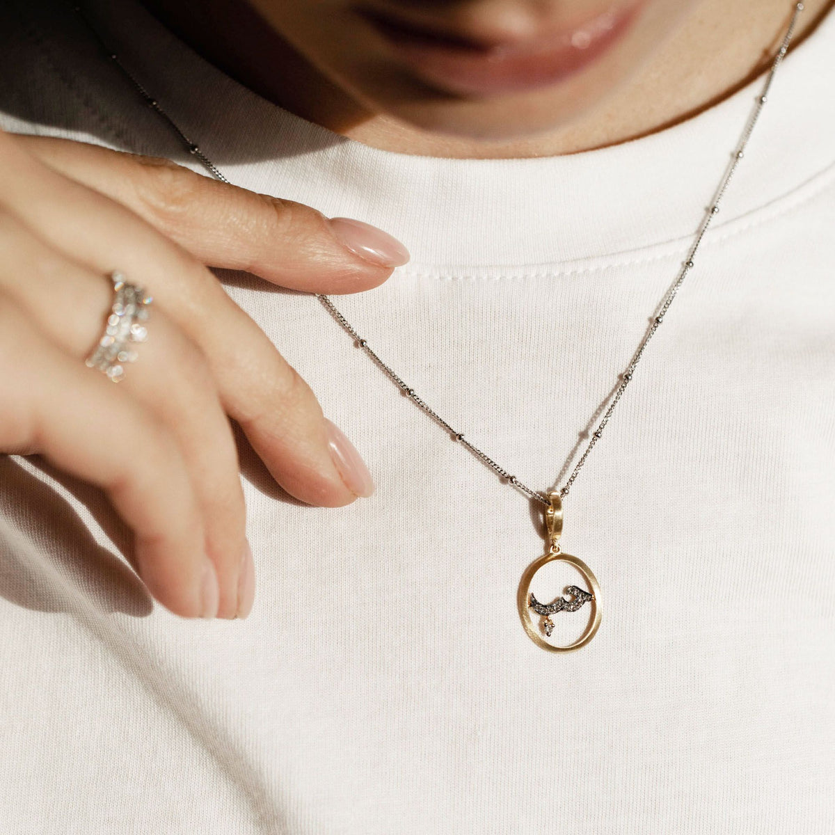 This Arabic Love Charm Pendant by Annoushka is a heartfelt tribute to love in all its forms—romantic, divine, and patriotic. Designed for Eid and beyond, the charm features the Arabic word for love, “hubb,” rendered in golden script and accented with diamonds. A powerful and poetic symbol to wear close.
