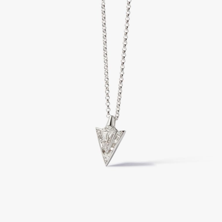 This Flight Arrow Necklace by Annoushka (white gold version) marries geometry and symbolism in a sleek Art Deco-inspired form. The arrow motif represents peace, direction, and courage—gracefully balanced and lit with fine diamonds. A modern talisman that channels movement and purpose in every detail.