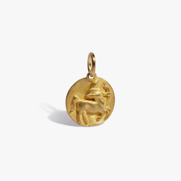 This Zodiac Sagittarius Pendant by Annoushka channels the boundless optimism and adventurous spirit of the Archer. Engraved with the image of the centaur, this radiant pendant honors those born between November 22nd and December 21st. Personalise the polished back for a symbolic talisman that captures freedom, curiosity, and fire-sign energy.