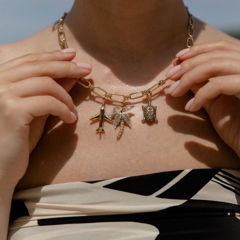 This Mythology Baby Turtle Pendant by Annoushka, affectionately named Alphonse, is a miniature sculpture of wisdom and calm. Featuring moving limbs, padded feet, and intricate underbelly markings, his diamond-set shell gleams with meaning. A gentle reminder of patience and protection, pair him with the Knuckle Bold Chain for personality and presence.