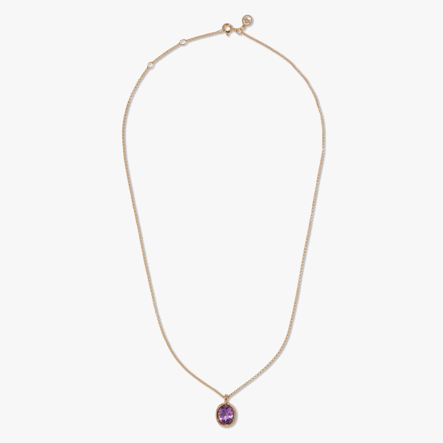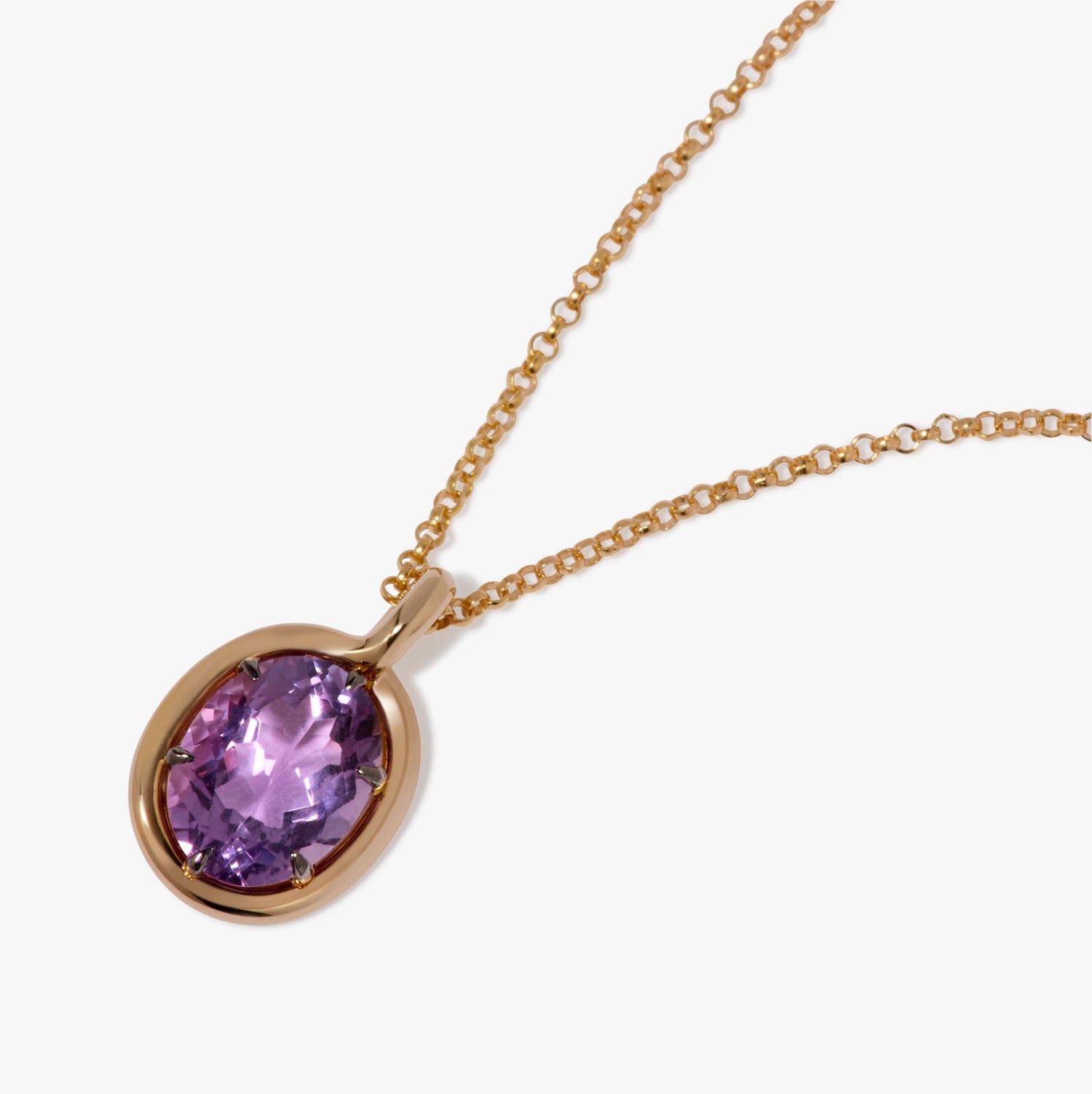 This Amethyst Drop Necklace by Annoushka glows with strength and serenity. A vibrant amethyst drop, known for its protective and courageous symbolism, is suspended from a sleek yellow gold chain featuring the Knuckle collection’s signature link. Perfect alone or paired with the matching amethyst earrings for a coordinated statement.