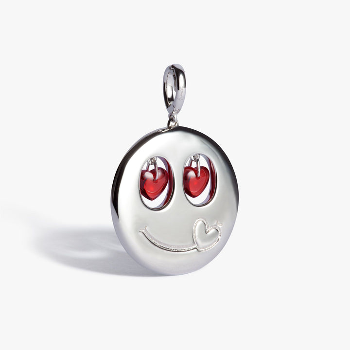 This Happy Cupid Charm Pendant by Annoushka is a joyful double-faced delight. Inlaid with pink sapphires and diamonds and animated with wobbling garnet cabochon eyes, it offers two expressions—one bright and smiling, the other engraved with a playful “blowing kiss.” A wearable dose of happiness.