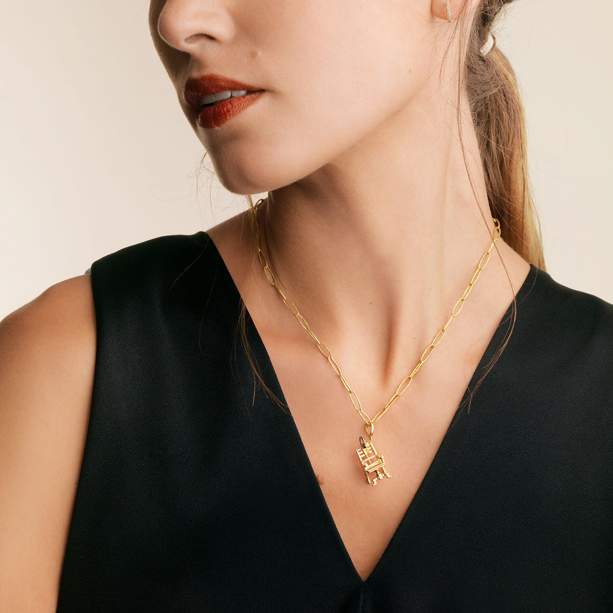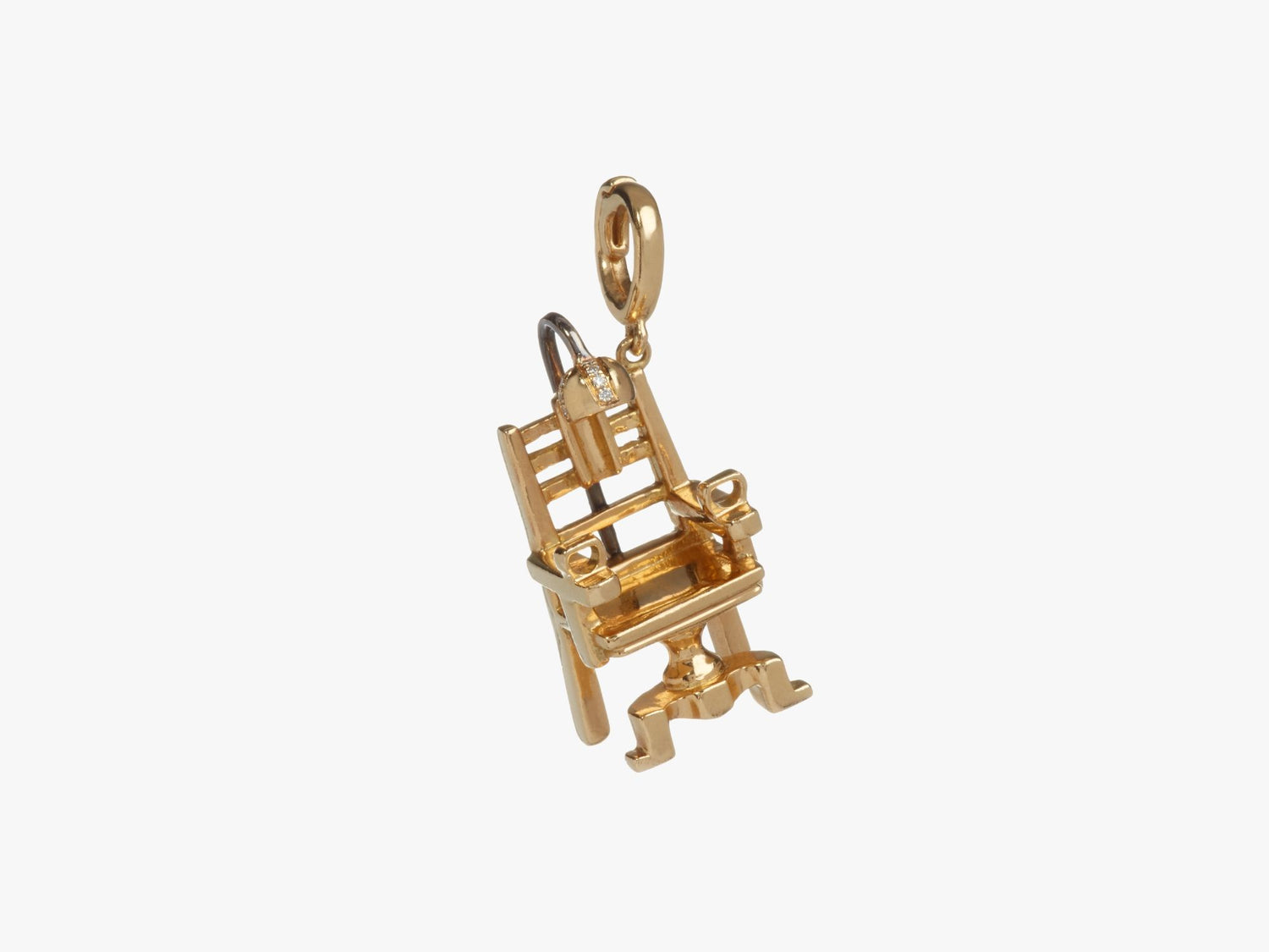 This Annoushka x The Vampire's Wife Seat Charm Pendant is a bold and evocative piece from the darkly poetic collaboration. Inspired by the song The Mercy Seat by Nick Cave & The Bad Seeds, the electric chair motif in gold and diamonds captures themes of judgment, redemption, and intensity. Wear it solo or layer for symbolic edge.