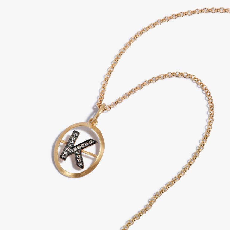 This Initial K Necklace by Annoushka offers a delicate ode to personal narrative. A playful yet polished addition to the Signature Initials range, it is designed for those who wear their story close to heart. An effortlessly refined piece for everyday layering.