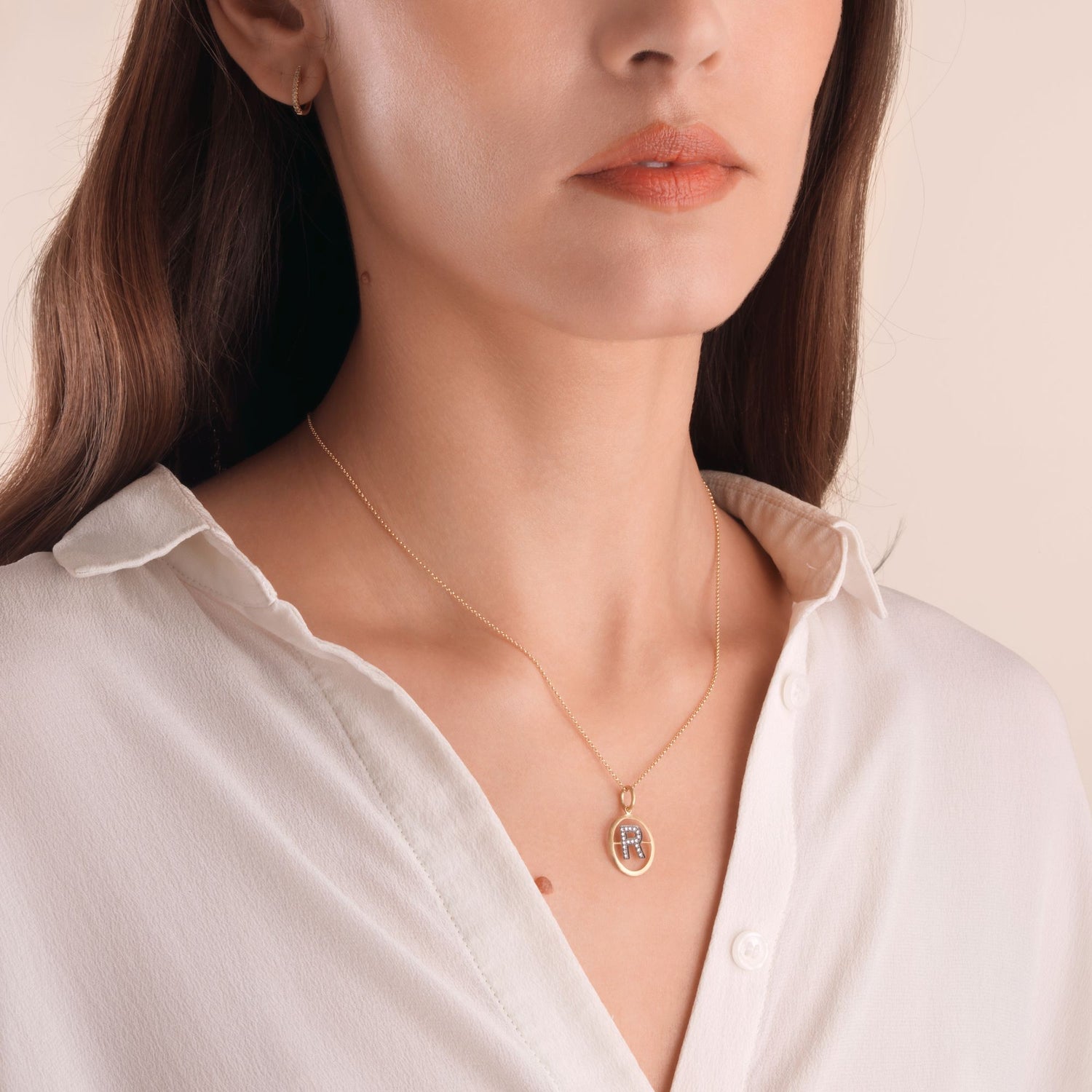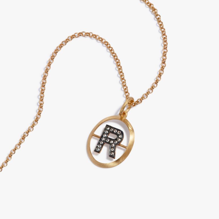 This Initial R Necklace by Annoushka channels timeless sophistication with a personal twist. A radiant part of the Initials collection, it’s designed for those who value jewelry that tells a story—quietly expressive and beautifully refined.