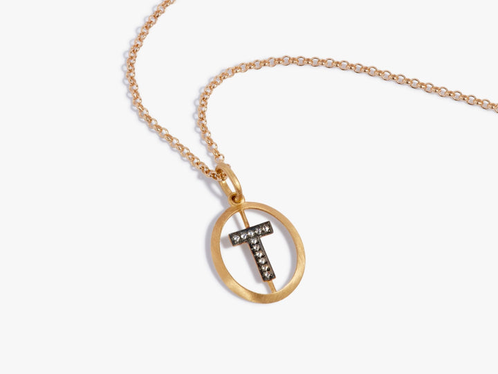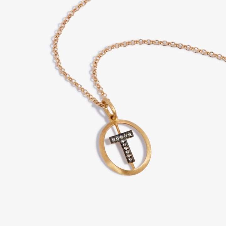 This Initial T Necklace by Annoushka is a classic expression of individuality, rendered in luminous yellow gold. With its reverse-set diamonds and understated sparkle, it carries personal significance in a design made to last.