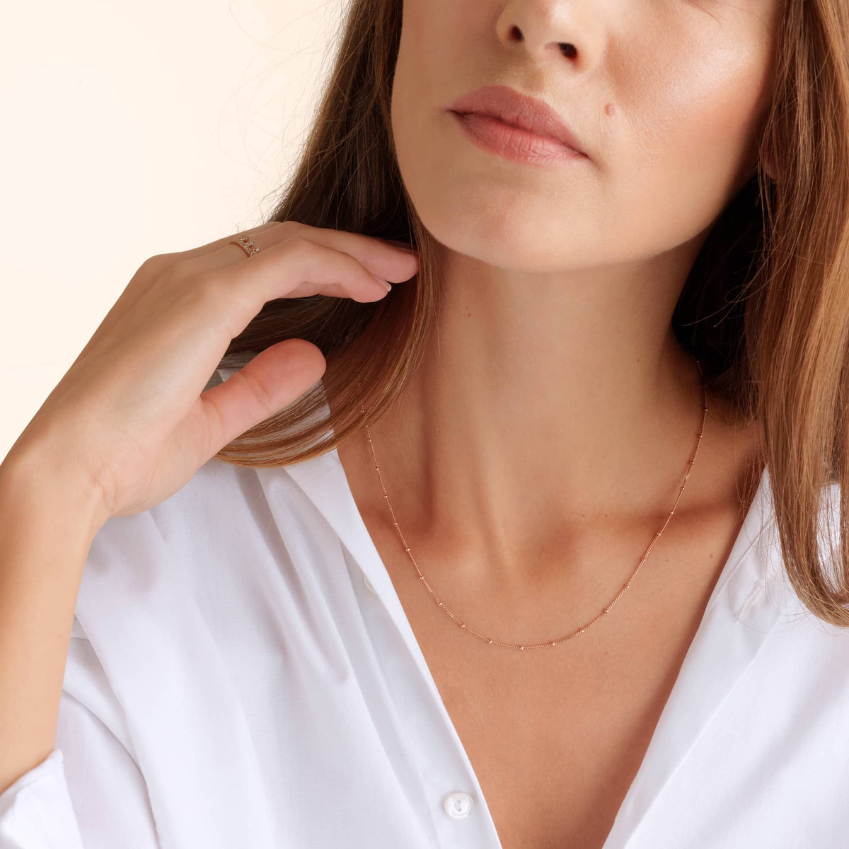 Handcrafted in 14k white gold, 45 cm in length, adjustable to 41, 43, or 45 cm, finished with a high-polish and sprung clasp.