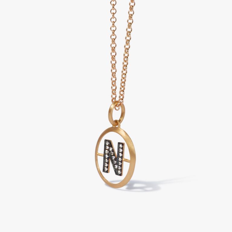 This Initials N Necklace by Annoushka is a beautiful expression of identity and elegance. The classic 'N' design sparkles with reverse-set diamonds, giving it a bold yet refined presence. A signature piece in the Annoushka collection, it’s ideal for daily wear and personal storytelling, whether representing your own name or someone dear. Its timeless charm makes it an unforgettable gift or personal keepsake.