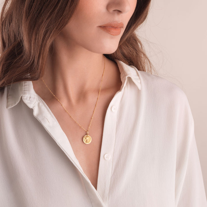 This Zodiac Leo Necklace by Annoushka honors the bold and radiant energy of those born under the sign of the Lion. Crafted in gleaming 18k yellow gold, the pendant is suspended from an adjustable chain and engraved with the iconic Leo motif. With its polished finish and optional personalized engraving on the reverse, it becomes a talisman of identity and cosmic symbolism.