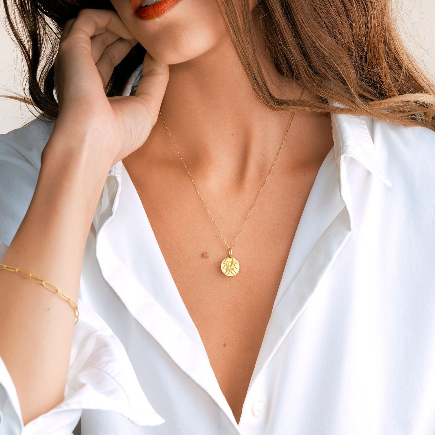 Handcrafted in solid 18k yellow gold. Pendant on an adjustable 14k gold chain, 45 cm. Engravable reverse side.