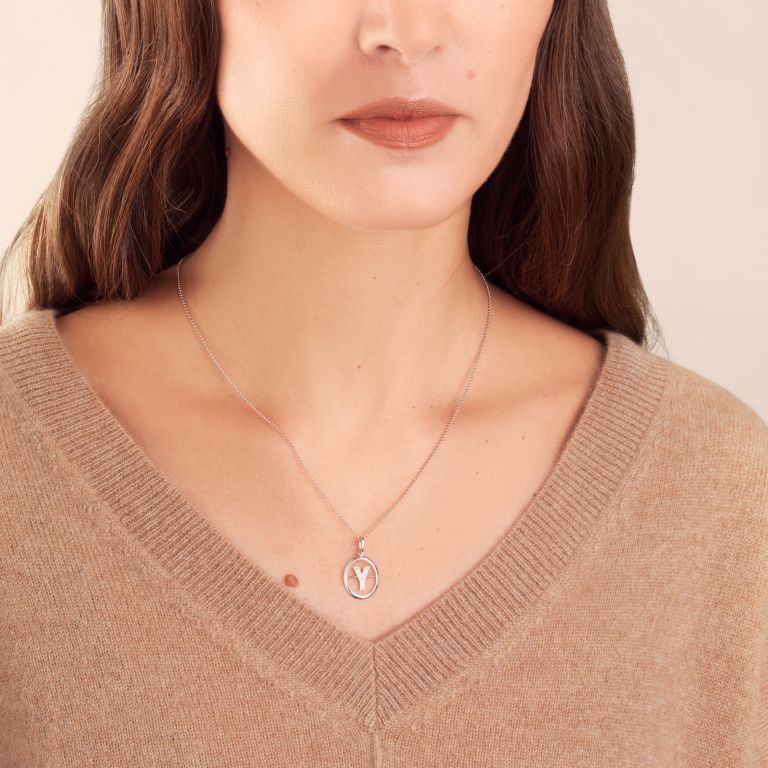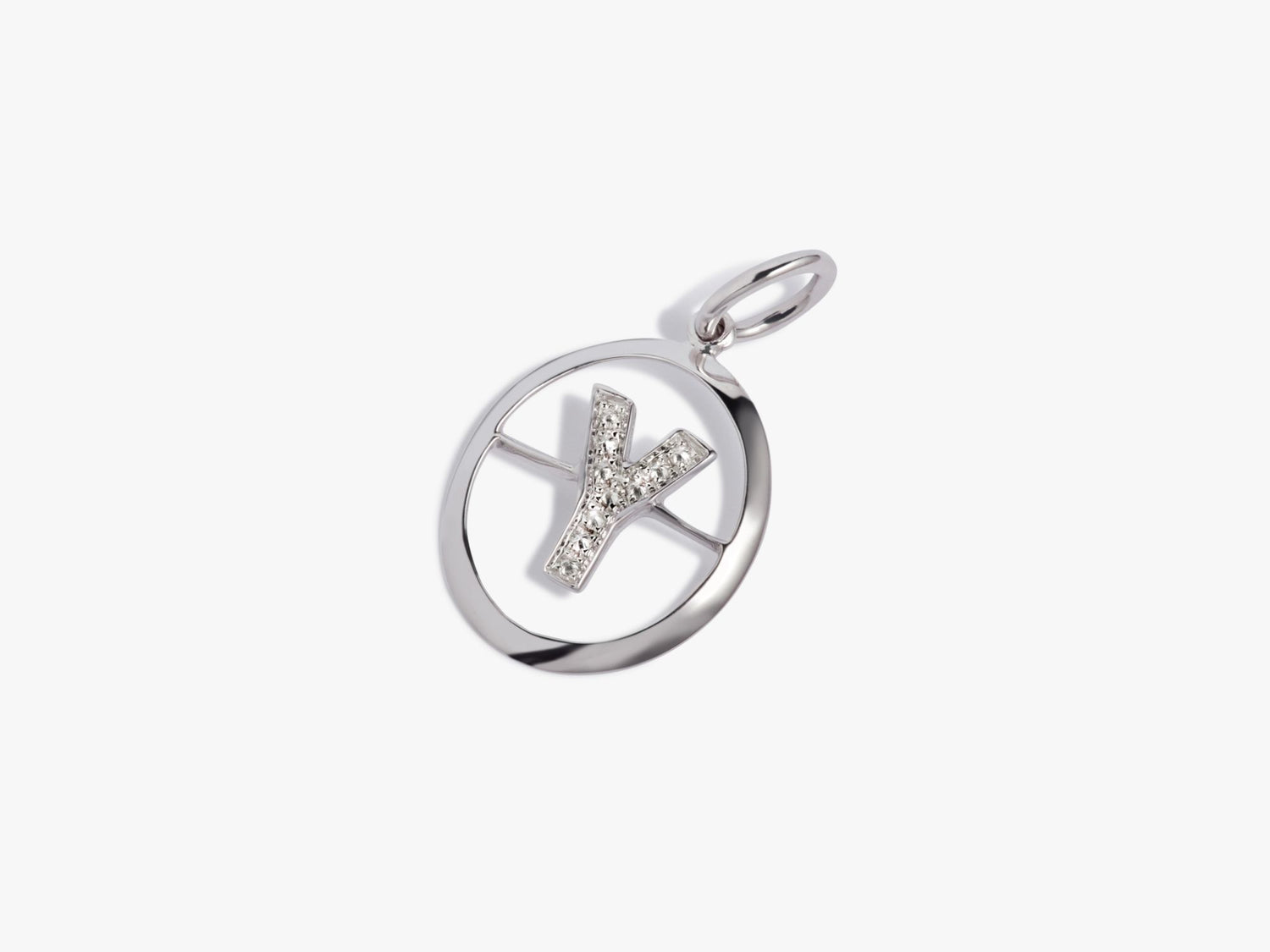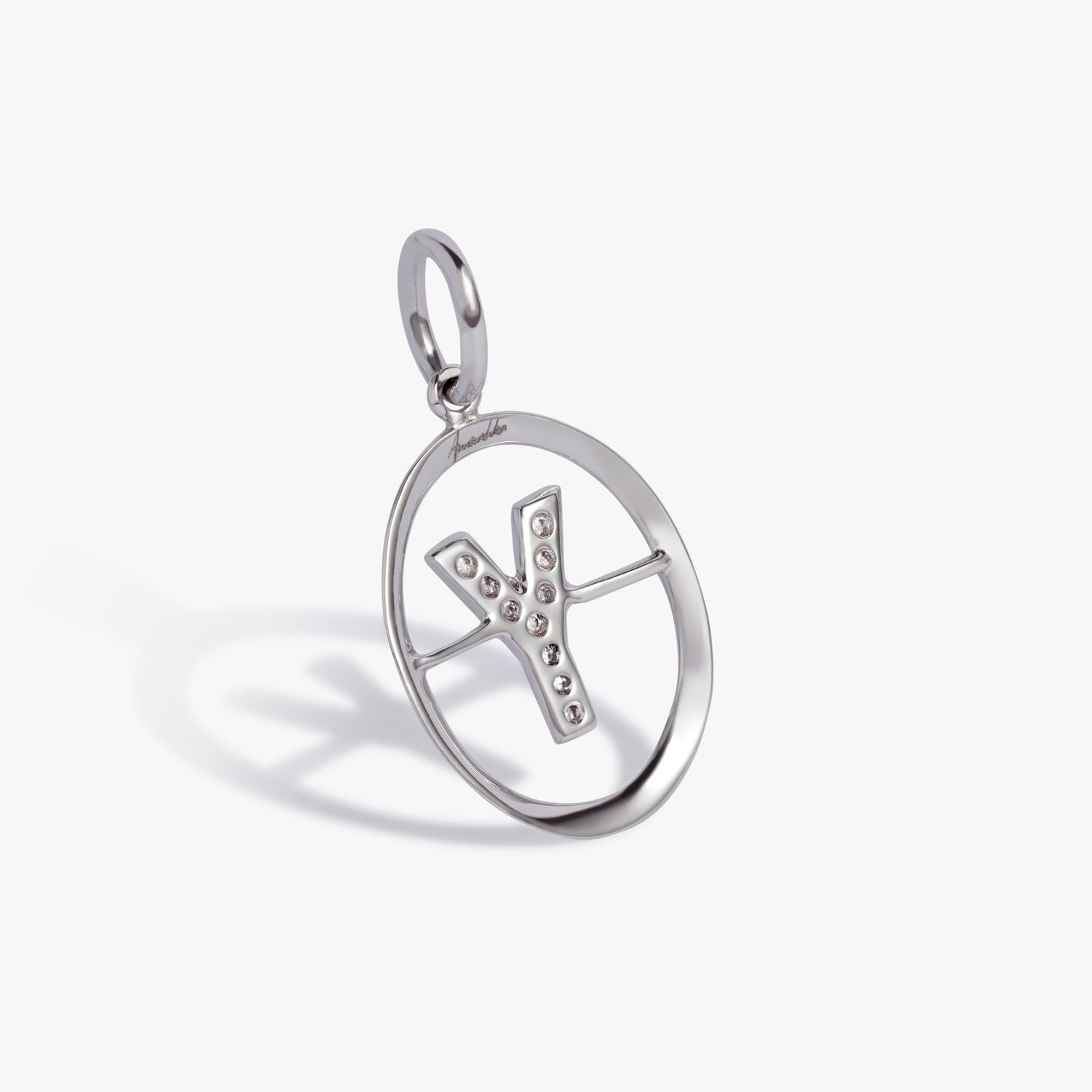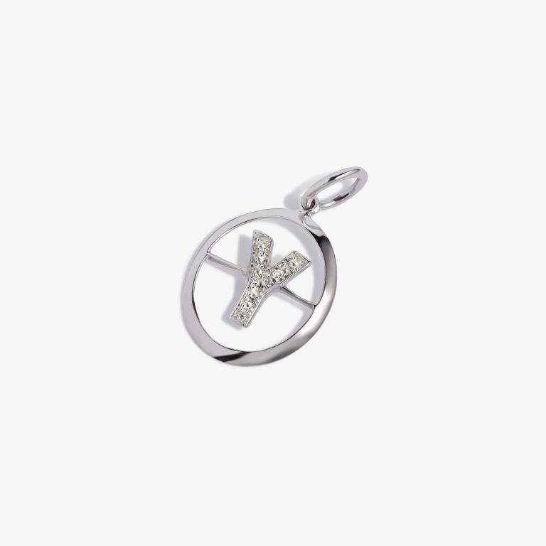 This Initials Y Pendant by Annoushka offers a delicate sparkle and elegant silhouette. Hand-set with 13 silver diamonds totaling 0.05ct, the polished white gold letter pendant captures timeless sentiment and personal charm. Style it alone or pair with other initials for a layered expression of love or identity.