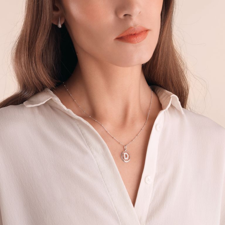This Initials D Pendant by Annoushka is a timeless and personal accessory that shines with quiet brilliance. Hand-set with 17 silver diamonds totaling 0.08ct, the refined 18k white gold pendant captures the beauty of simplicity and sentiment. Ideal as a gift or self-celebration.