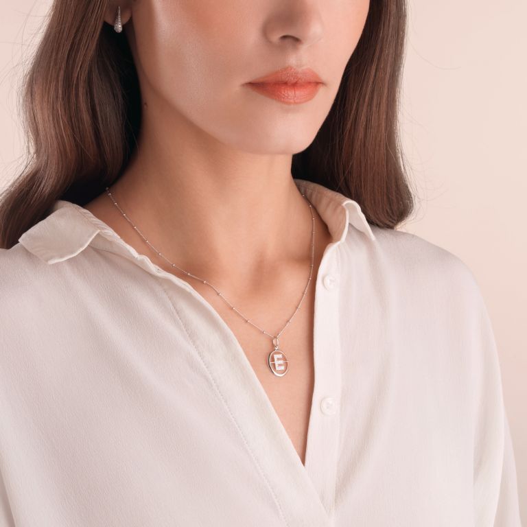 This Initials E Pendant by Annoushka is a radiant tribute to personal identity. Sculpted in 18k white gold and hand-set with 16 silver diamonds totaling 0.08ct, the pendant offers a soft sparkle and timeless elegance. Whether worn alone or in a curated collection of initials, it tells your story with effortless charm.