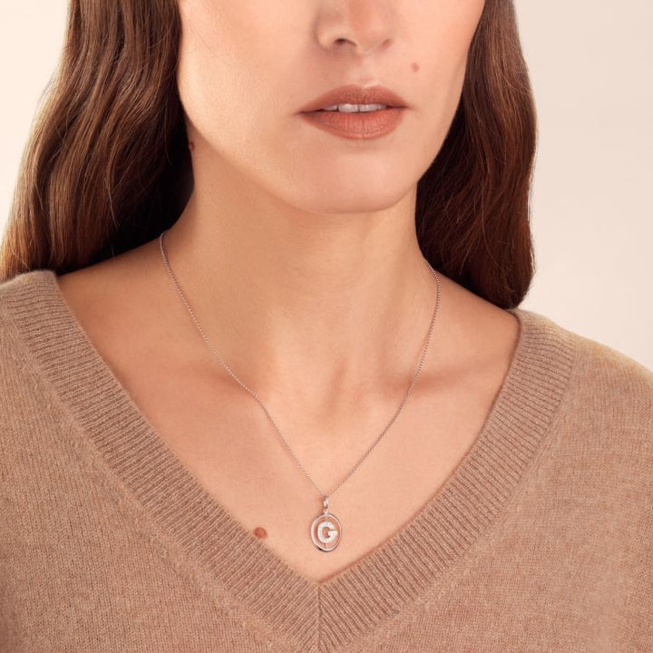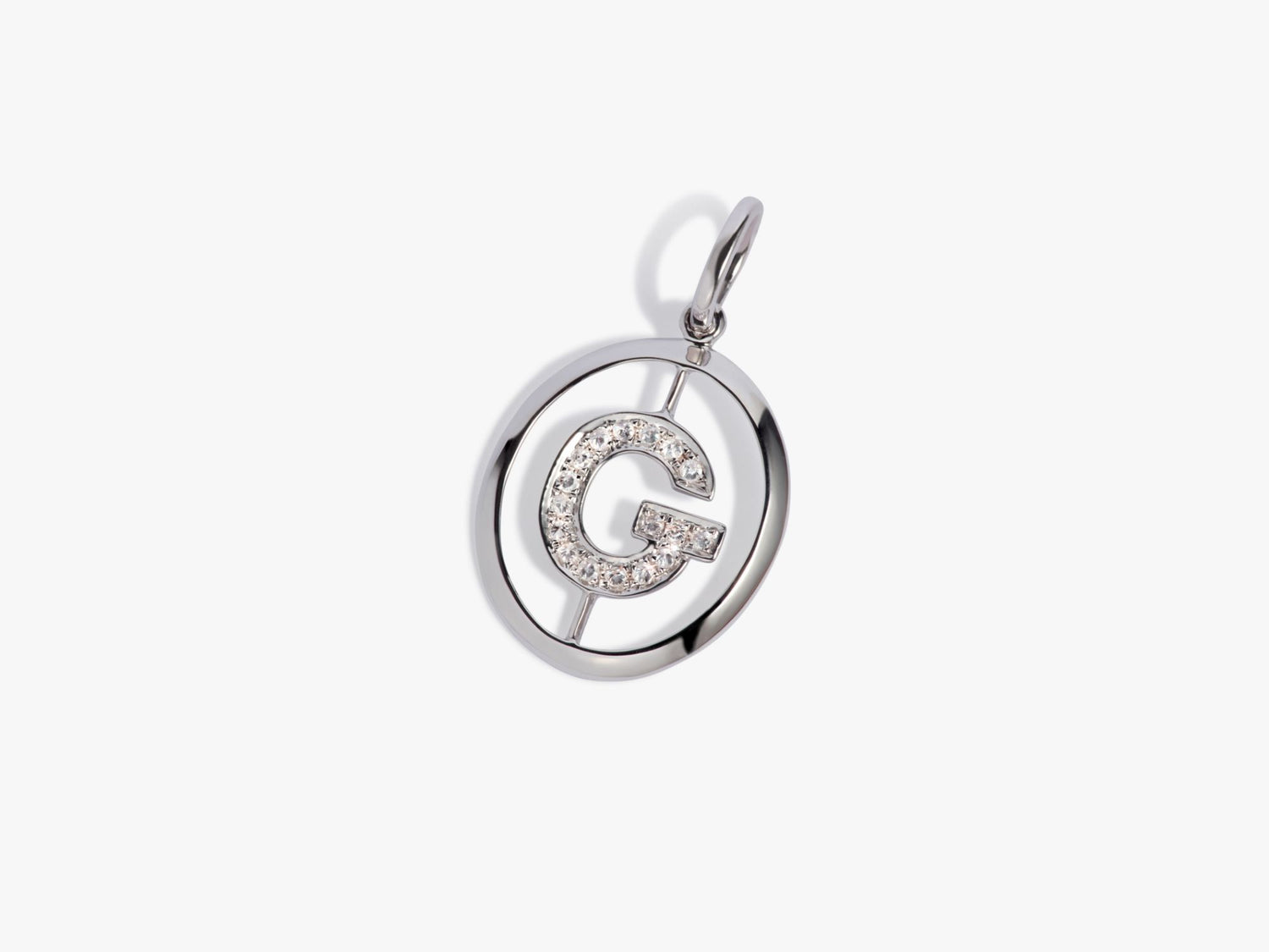 This Initials G Pendant by Annoushka brings sculptural form and soft radiance together. Set with 17 silver diamonds totaling 0.09ct, the gleaming 18k white gold letter captures meaning and style in one wearable keepsake. Layer with other initials or let it shine solo.