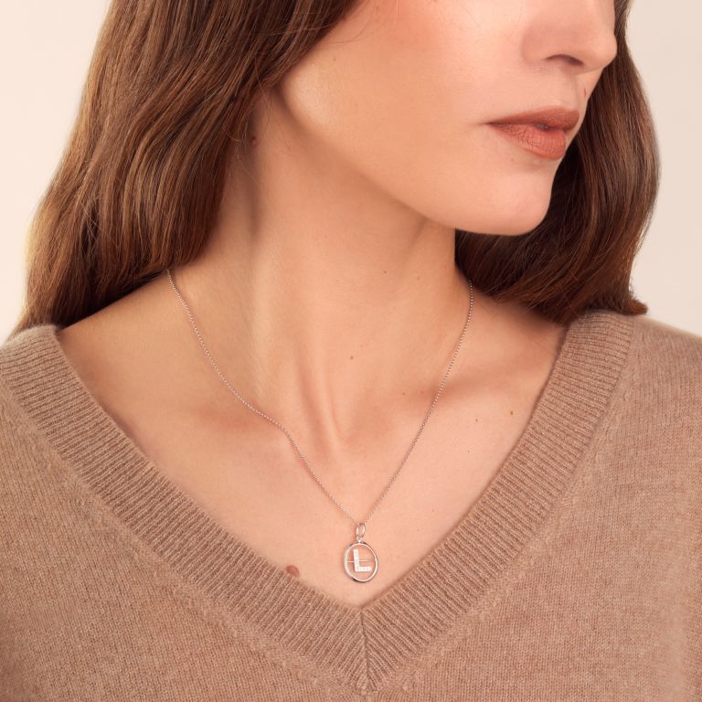 This Initials L Pendant by Annoushka offers subtle elegance and polished charm. With 10 silver diamonds totaling 0.06ct set into lustrous 18k white gold, it’s a beautiful accent for a meaningful name or moment, perfect for daily wear or thoughtful gifting.
