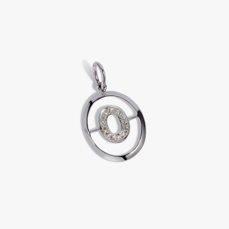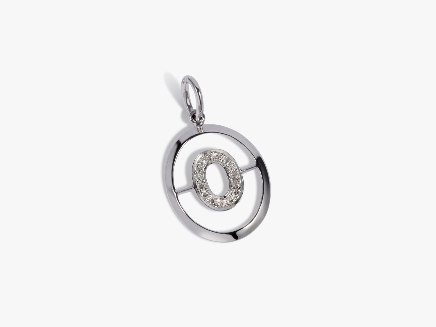 This Initials O Pendant by Annoushka brings smooth lines and sparkling detail together in perfect harmony. Cast in 18k white gold and hand-set with 15 silver diamonds totaling 0.07ct, this piece celebrates identity with quiet sophistication.