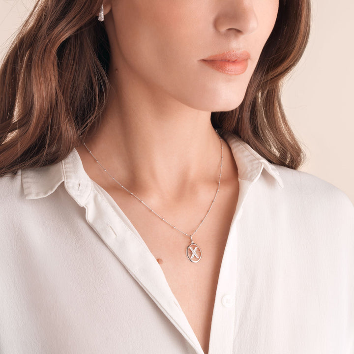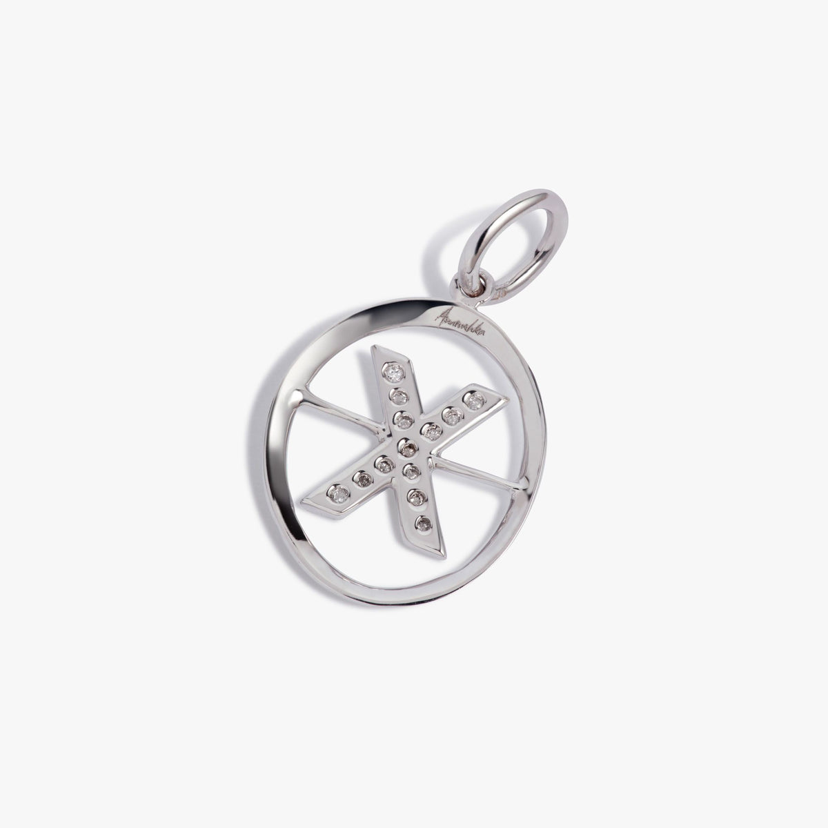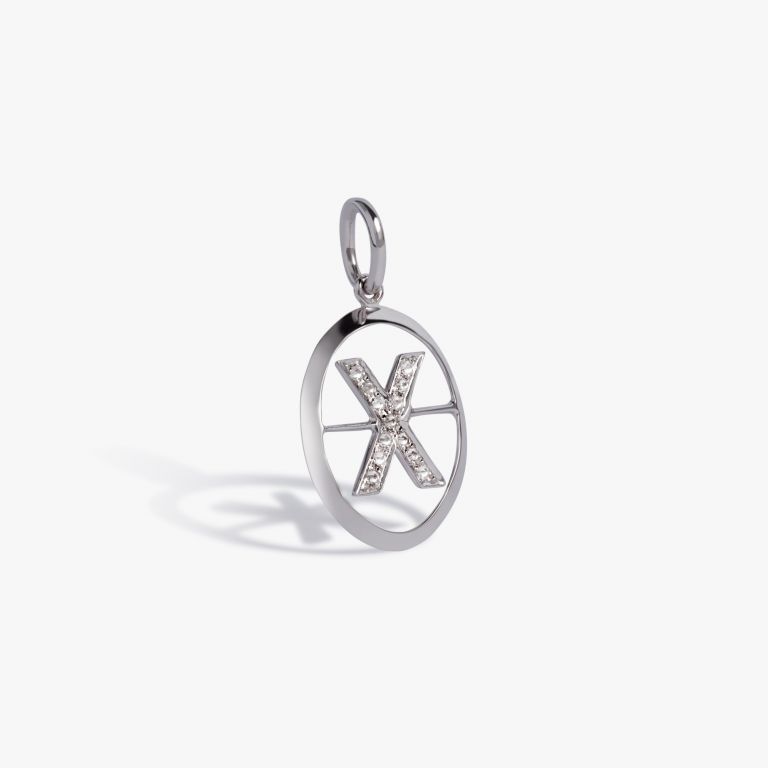 This Initials X Pendant by Annoushka lends rare letters their rightful elegance. Crafted in polished 18k white gold and hand-set with 13 silver diamonds totaling 0.08ct, it brings refined charm to those who wear the unexpected with pride.