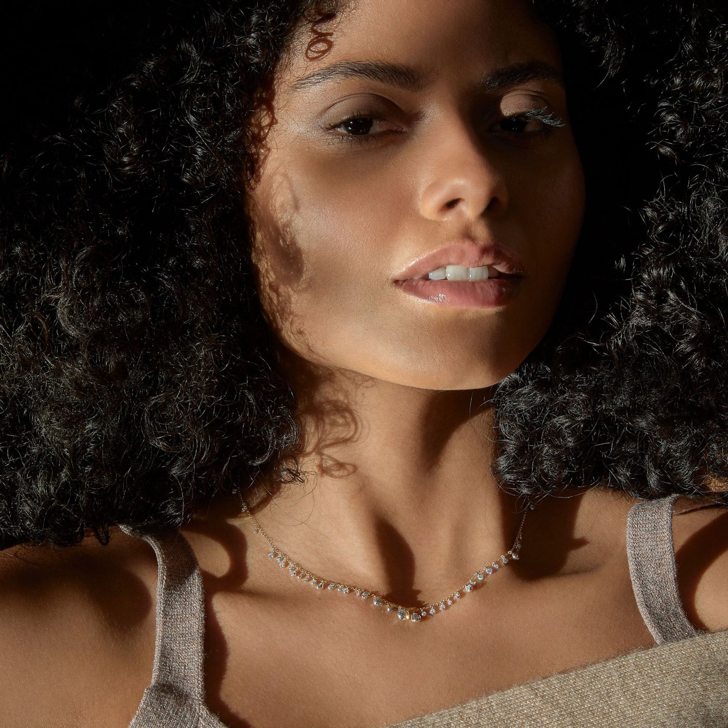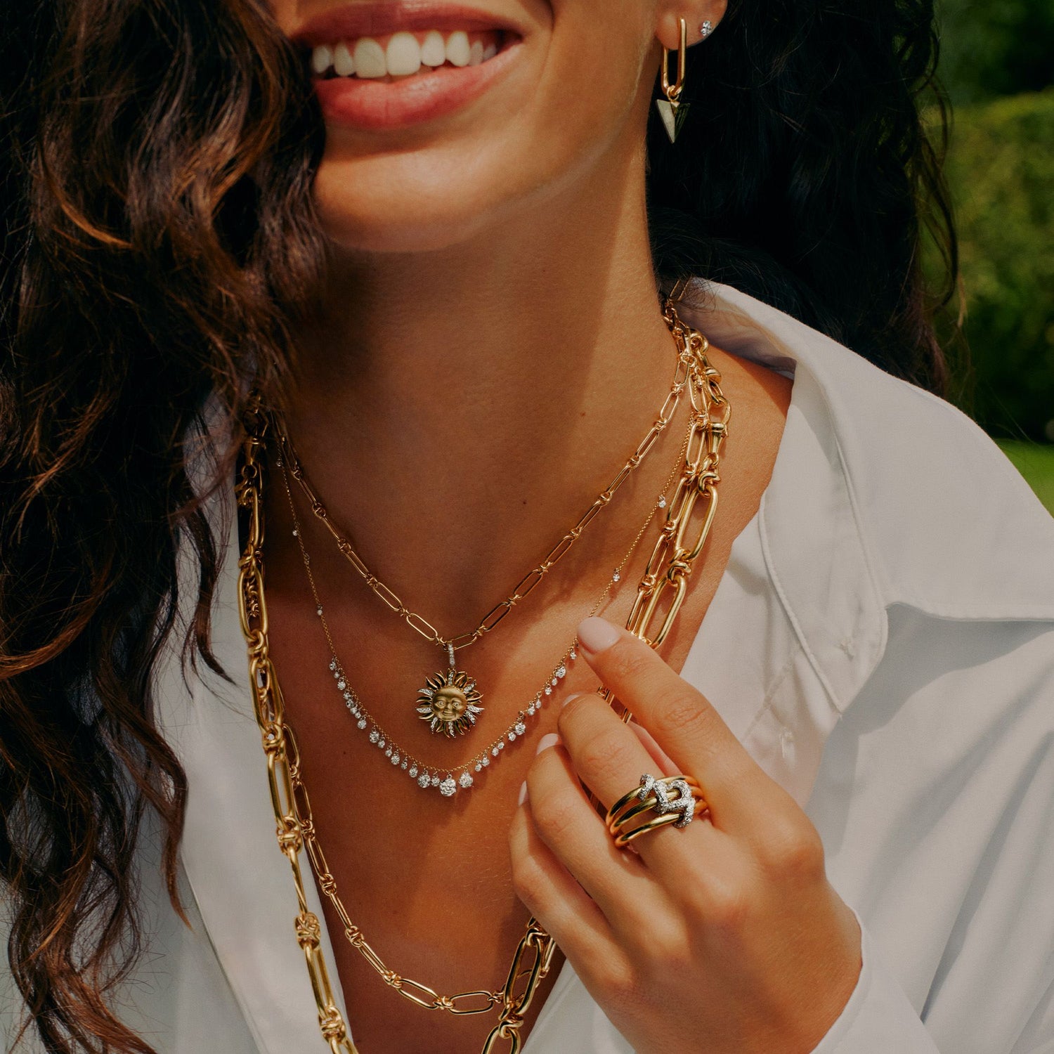 This Whoopsie Daisy Necklace by Annoushka is a radiant expression of joy and nostalgia. Inspired by wild British meadows, each diamond is nestled in the iconic Marguerite cup setting, combining whimsy with fine craftsmanship. Designed in 18k yellow and white gold, this piece from the Signature collection brings effortless elegance to everyday dressing.