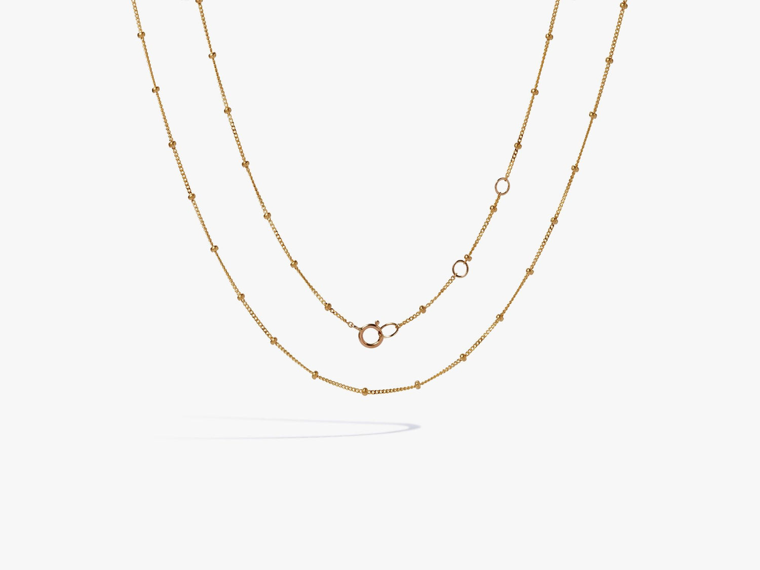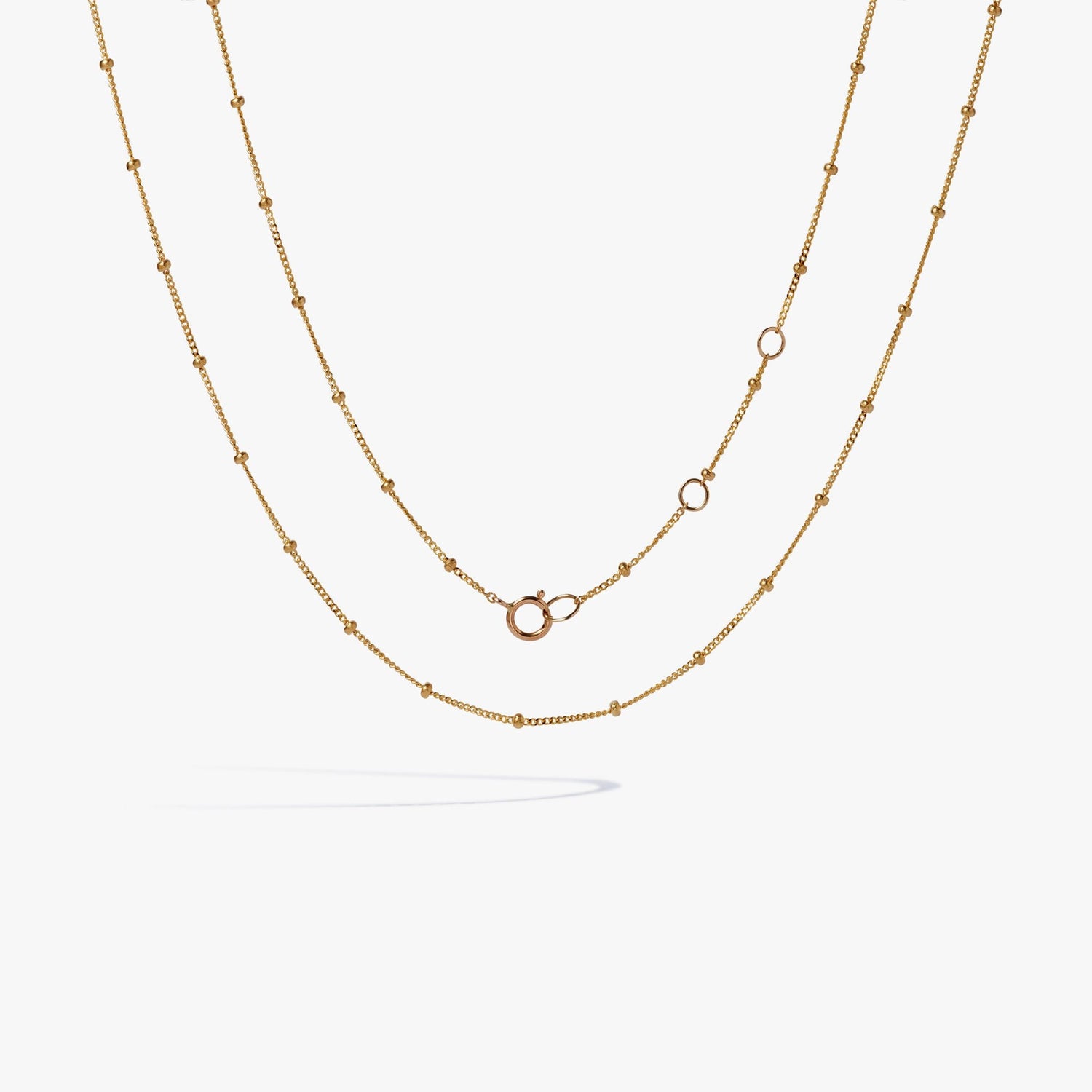 Handcrafted in 14k yellow gold. Adjustable length: 41, 43, or 45cm. High polish finish with bolt ring clasp.