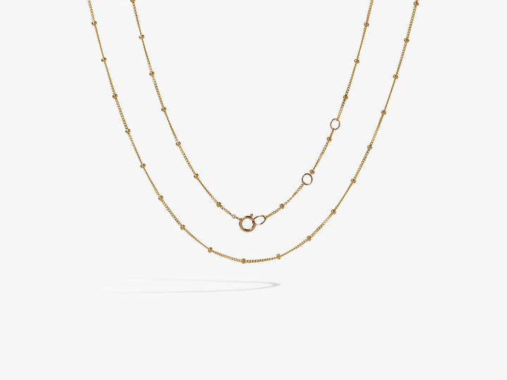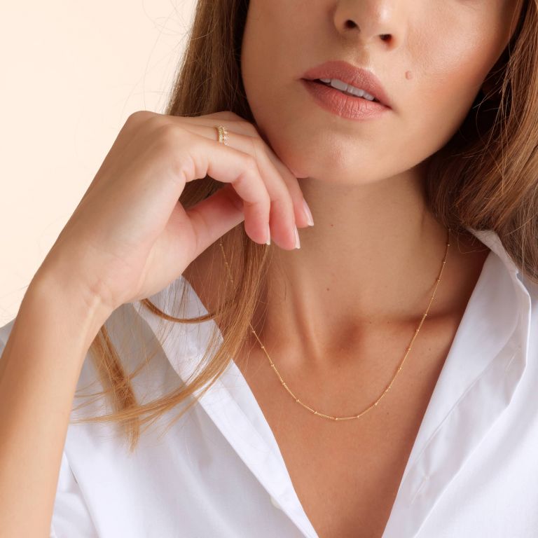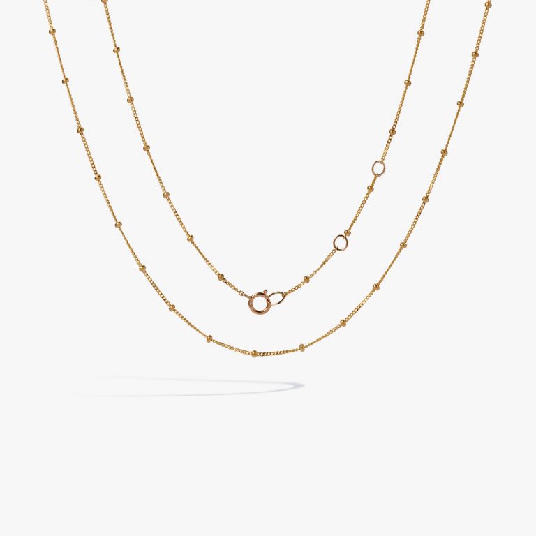 This Saturn Short Chain by Annoushka distills elegance into a refined 45cm gold necklace, designed with delicate golden orbs that offer texture and light. With adjustable length options and a classic bolt ring clasp, it’s a staple for layering with pendants or charms, or wearing alone for understated sophistication.
