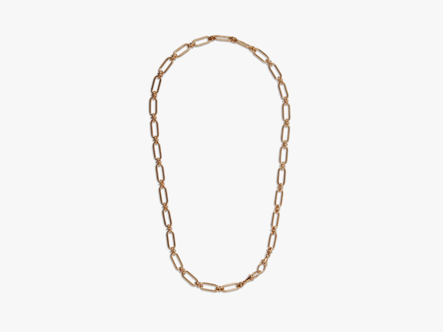 This Knuckle Bold Chain Necklace by Annoushka exemplifies bold craftsmanship and fluid design. Made from solid 14k yellow gold with unique articulated joints, the chain moves freely and features innovative horseshoe clasps on both ends for endless styling possibilities. Handmade in Arezzo, Italy, it’s a striking standalone piece or an ideal base for charms and layered chains.