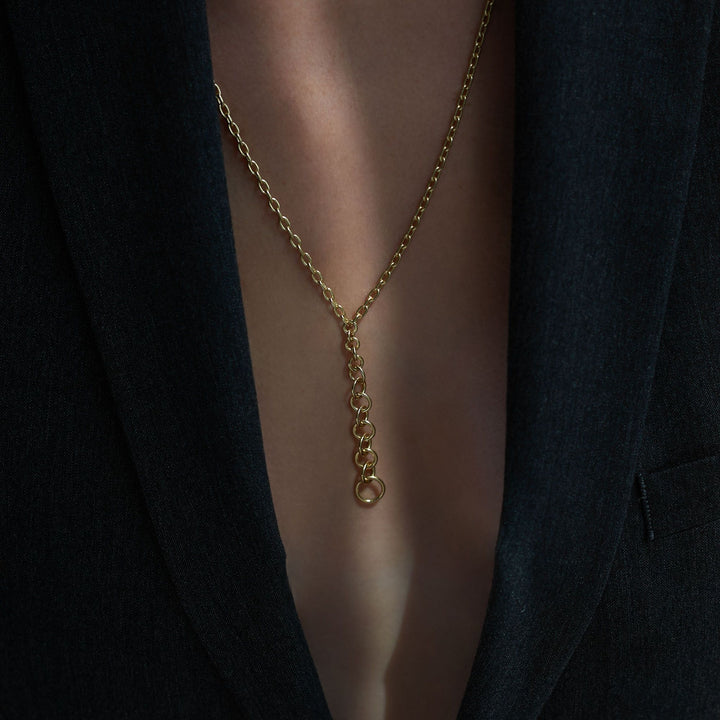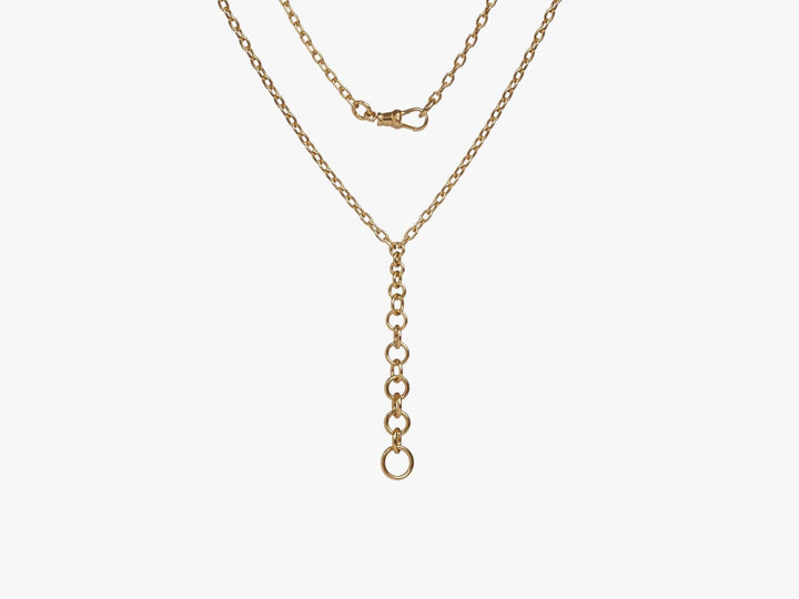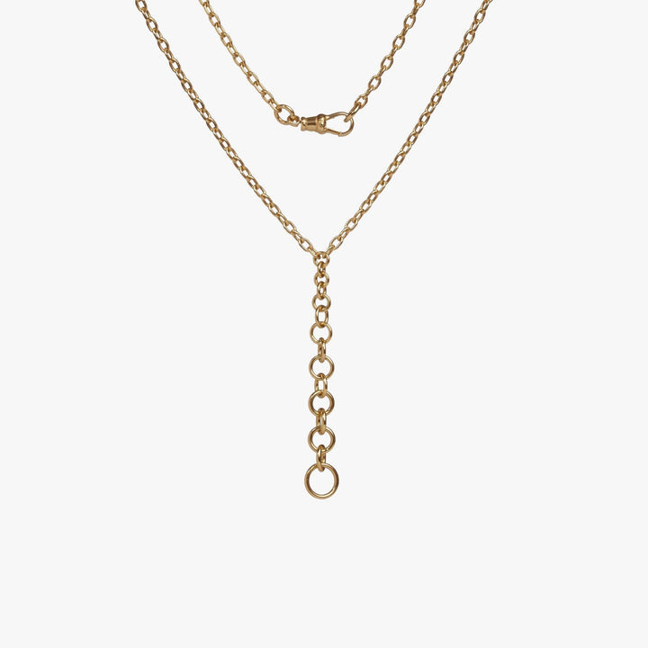 Handcrafted in 18k yellow gold with 70cm chain length, including an 18cm removable section. High polish finish with fob clasp.