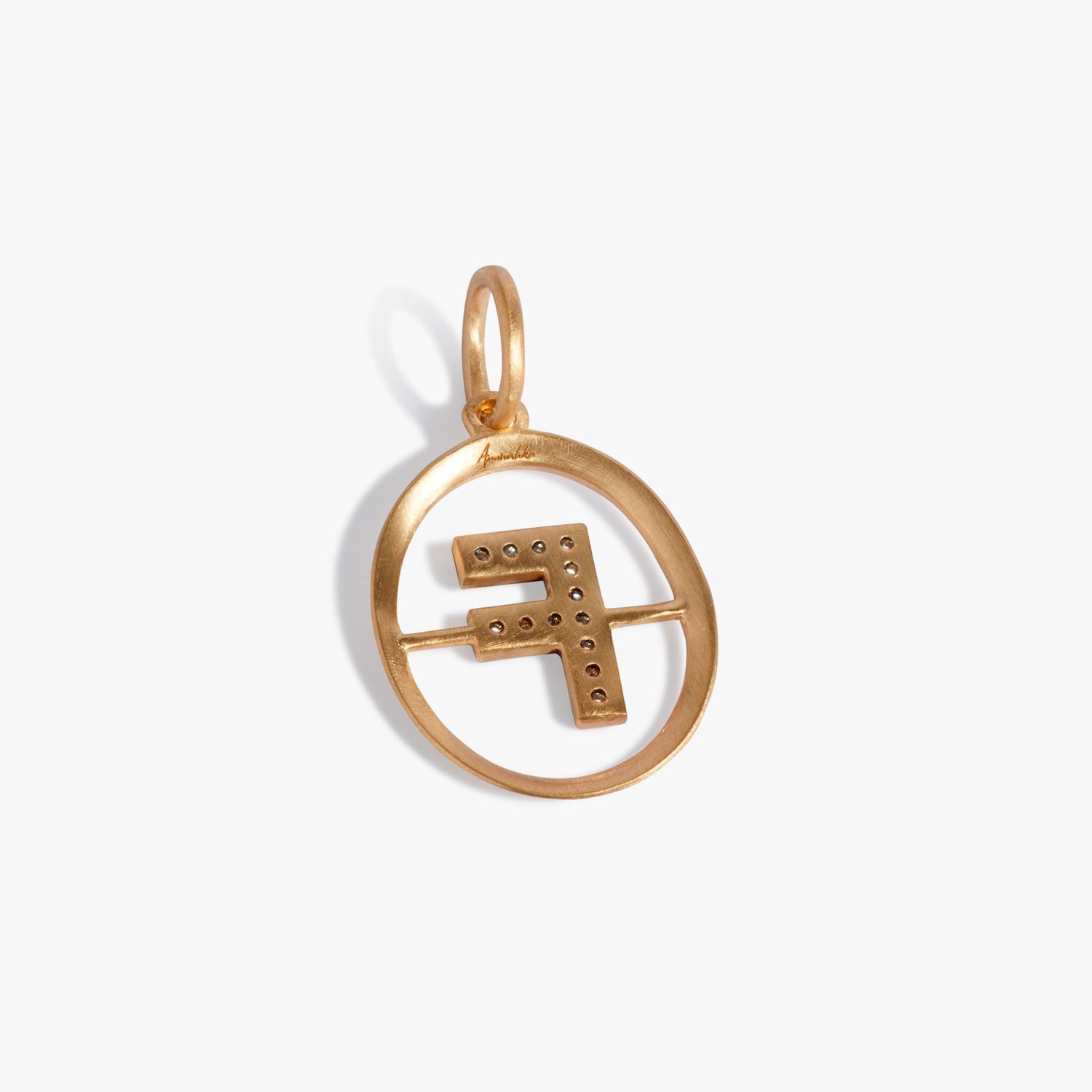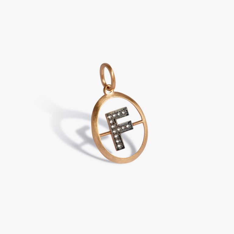 This Initials F Pendant by Annoushka carries the signature textured warmth in a satin finish of solid 18k yellow gold. The letter ‘F’ is micro-pavé set with 0.07 carats of silver diamonds into black rhodium, marrying tradition with contemporary style. Celebrate a name or loved one in this cherished pendant, worn solo or layered. Custom orders available in 18k rose gold.