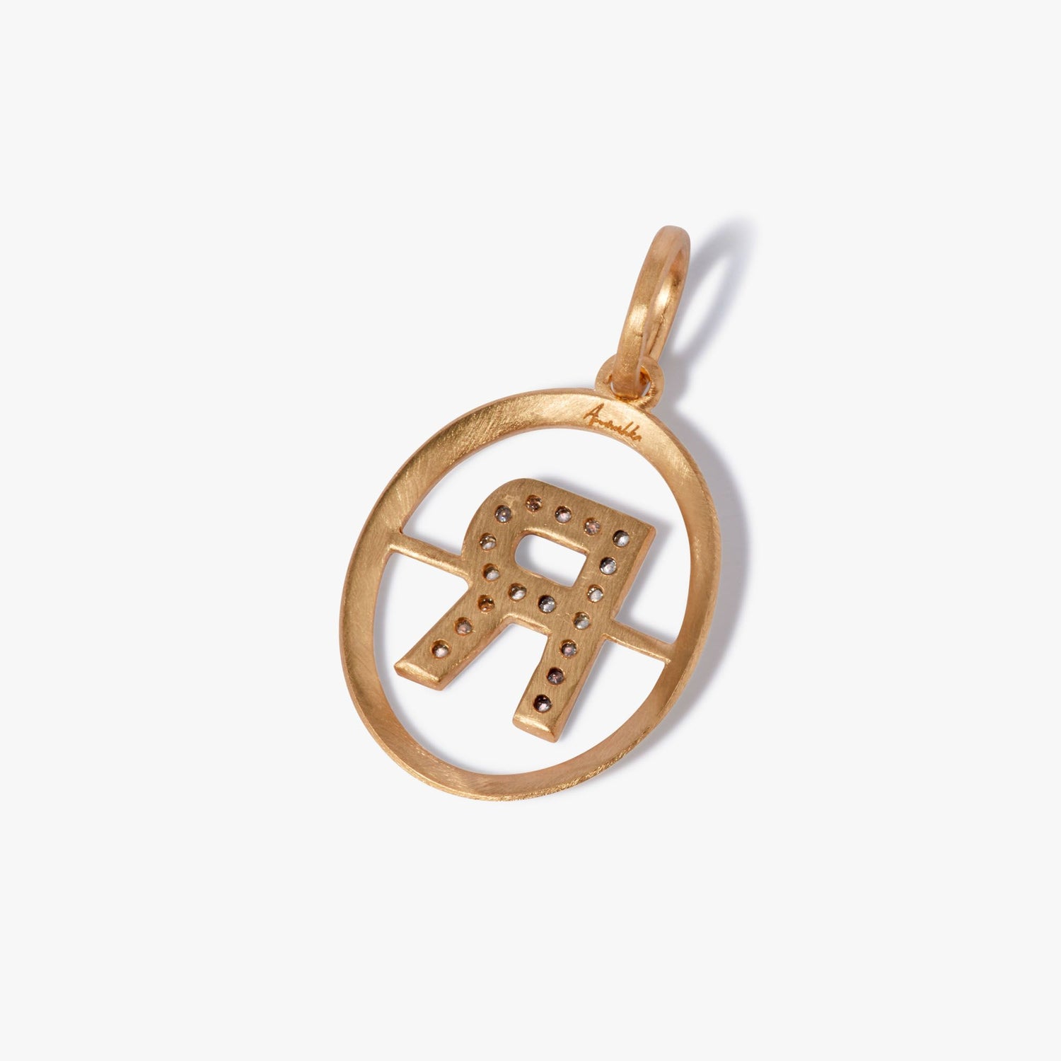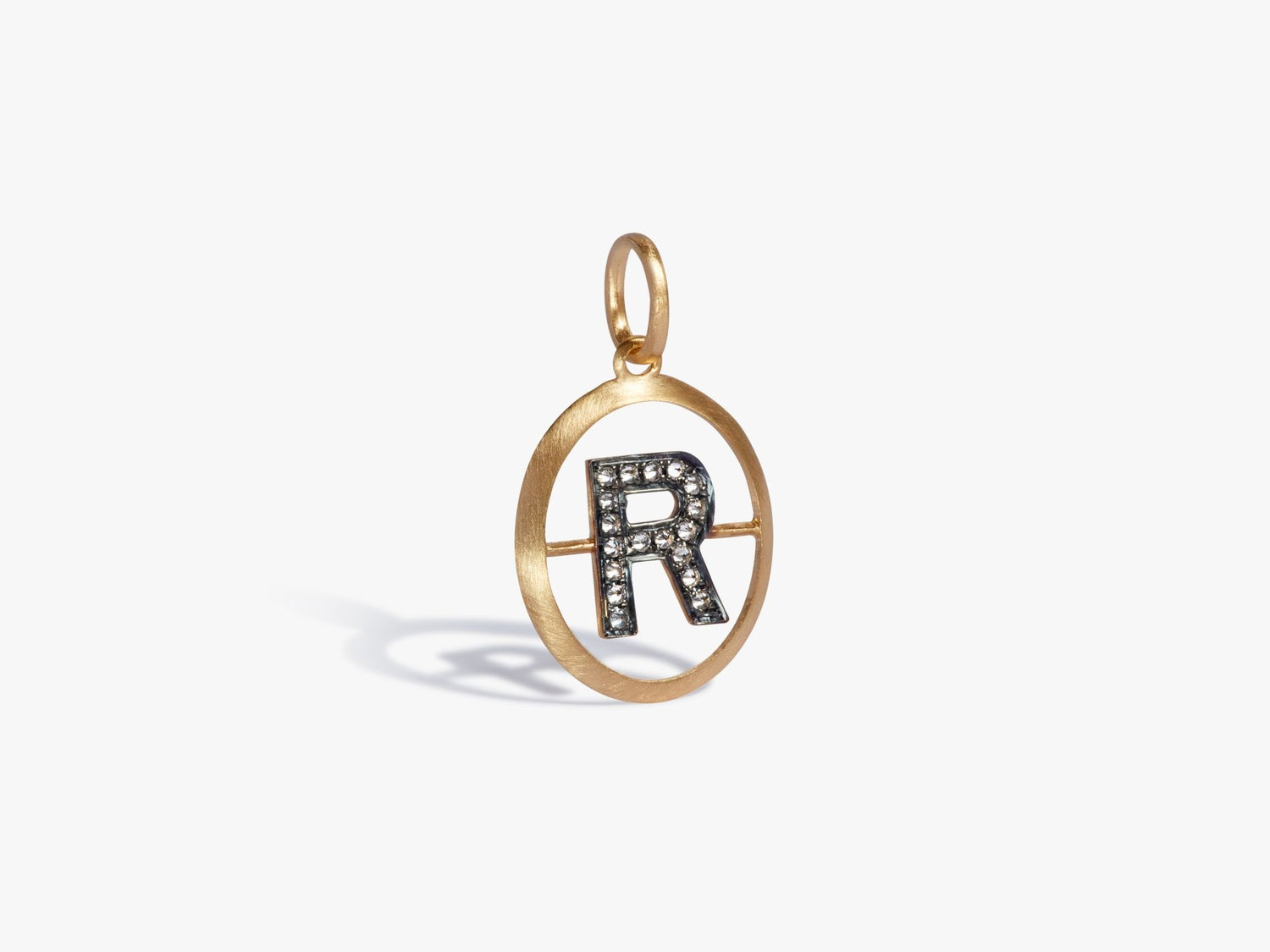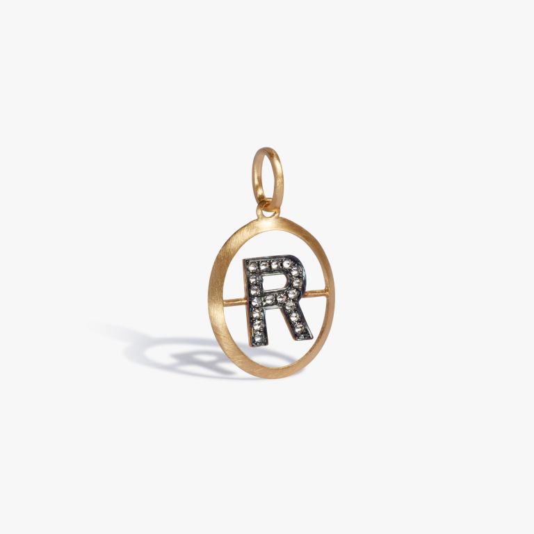This Initials R Pendant by Annoushka is a celebrity favorite crafted from solid 18k yellow gold with a soft satin finish. The letter ‘R’ features 0.09 carats of silver diamonds micro-pavé set into black rhodium, offering a modern twist on a sentimental classic. Wear alone or layered with Mythology pendants. Customisable in 18k rose gold.