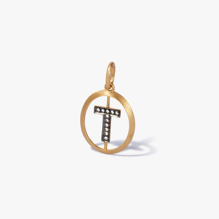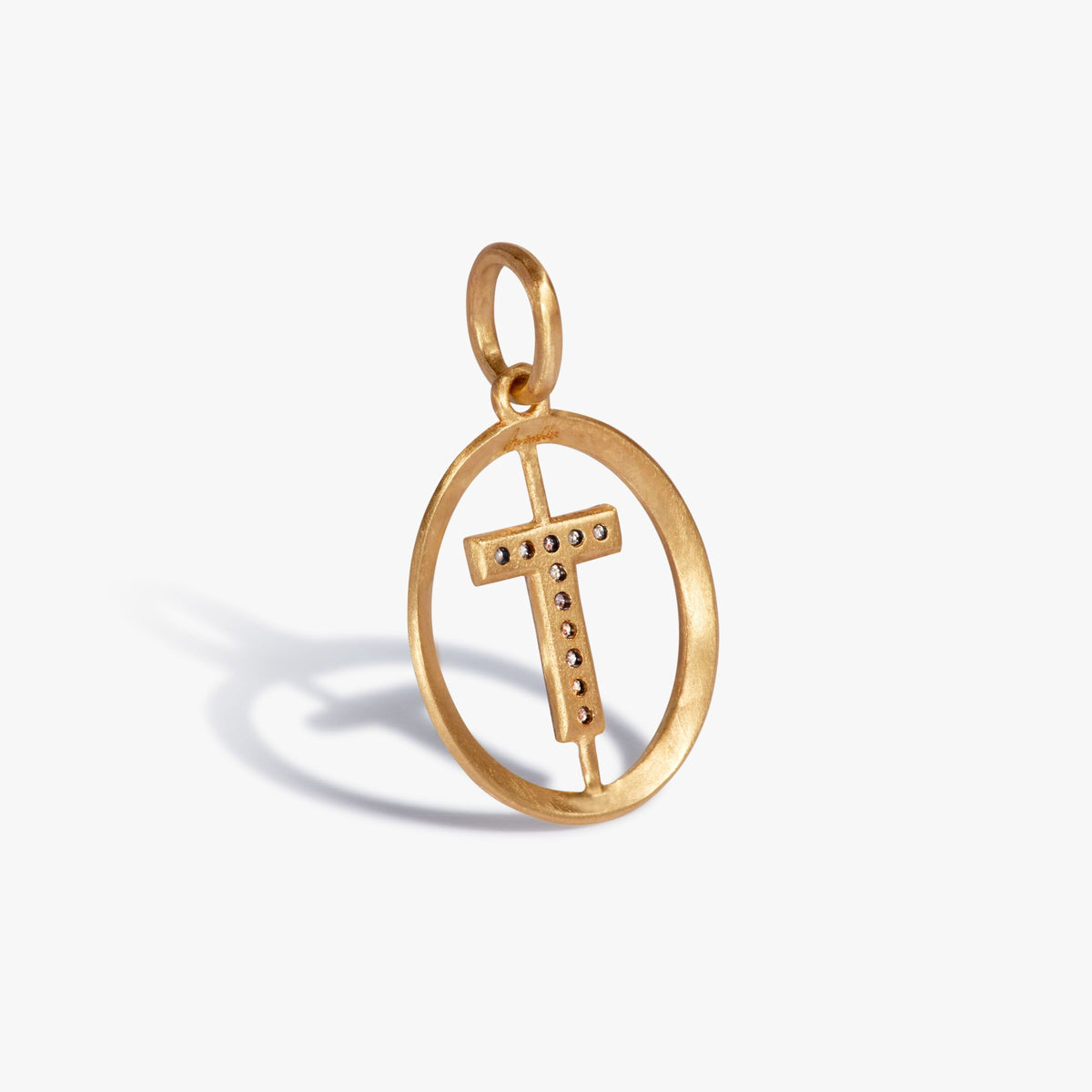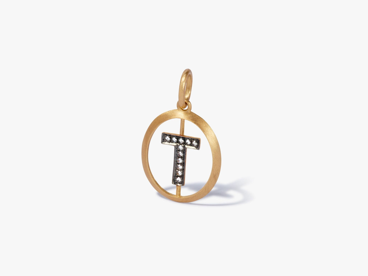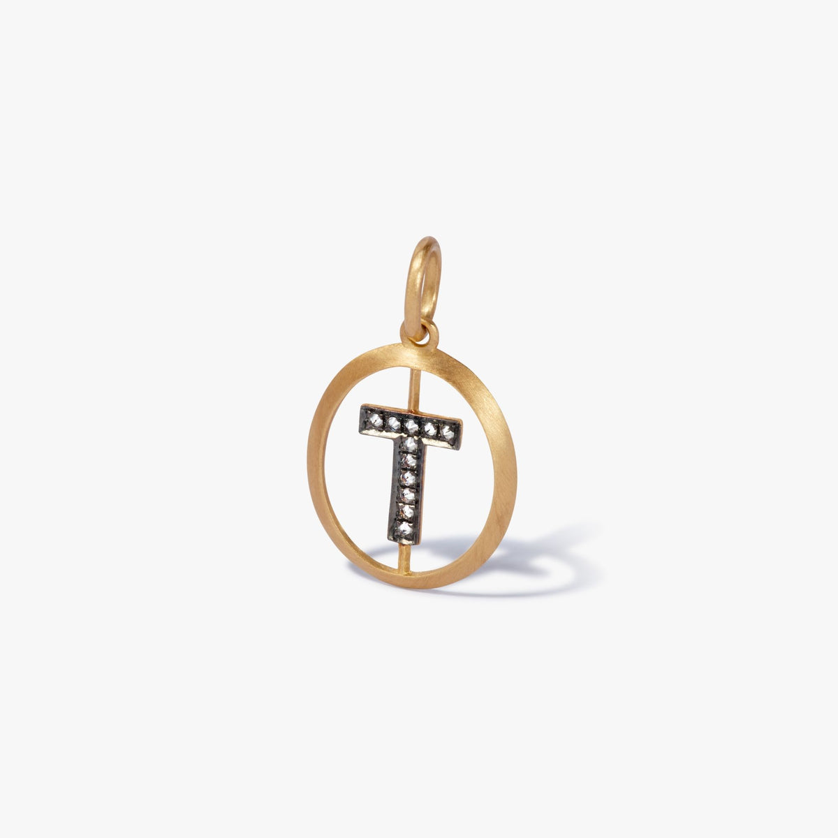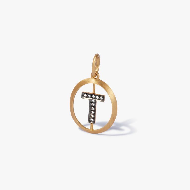 This Initials T Pendant by Annoushka offers a beautiful texture and warmth in solid 18k yellow gold with a soft satin finish. The letter ‘T’ is micro-pavé set with 0.06 carats of silver diamonds into black rhodium, combining tradition with contemporary elegance. Perfect for solo wear or layering. Customisable in 18k rose gold.
