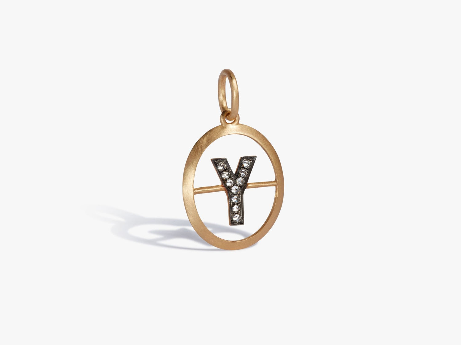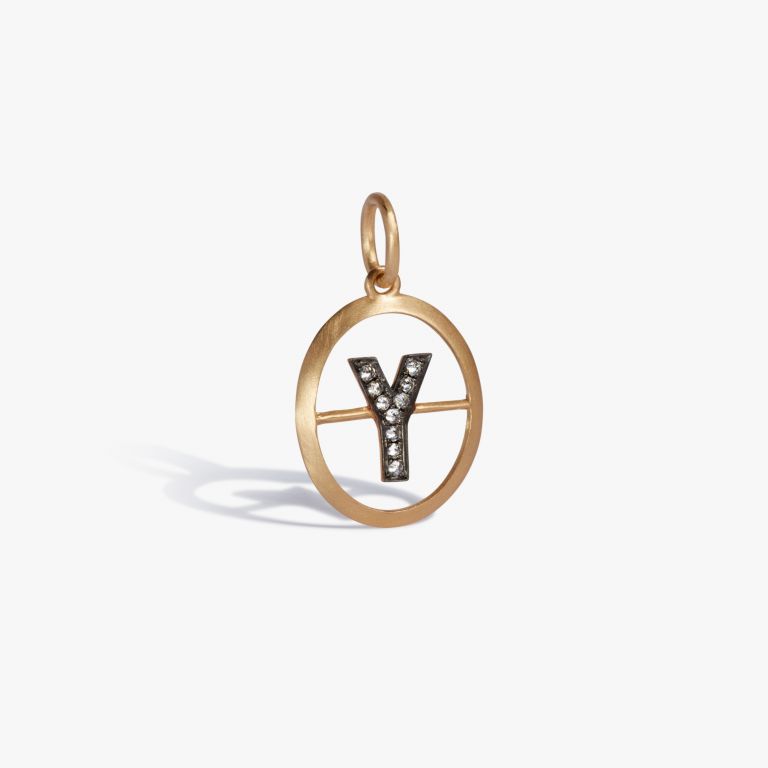 This Initials Y Pendant by Annoushka is crafted in solid 18k yellow gold with a soft satin finish. The letter ‘Y’ sparkles with 0.05 carats of silver diamonds micro-pavé set into black rhodium, combining sentimental value with modern design. Perfect for layering or solo wear. Customisable in 18k rose gold.