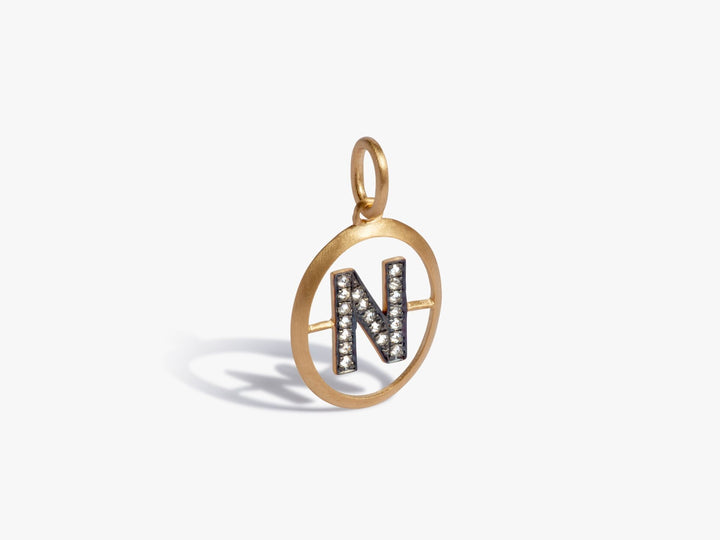 This Initials N Pendant by Annoushka is a celebrity favourite crafted in solid 18k yellow gold with a soft satin finish. The letter ‘N’ sparkles with 0.10 carats of silver diamonds micro-pavé set in black rhodium, combining traditional sentimentality with modern texture. Perfect worn alone on a Mini Belcher Chain or layered with Mythology pendants. Customisable in 18k rose gold.