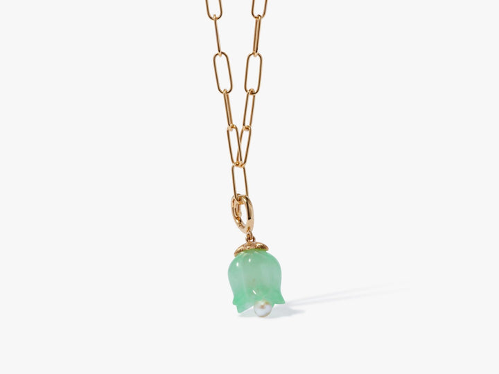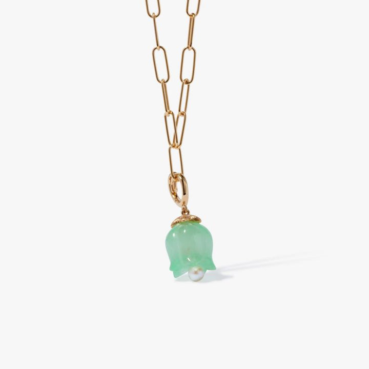 This Tulips Necklace by Annoushka is a charming pendant handcrafted in 18k and 14k yellow gold, featuring a carved green jade gemstone and a freshwater pearl nestled within the tulip bloom. The pendant’s high polish finish complements the 14k yellow gold mini cable chain (45cm) with a sprung clasp. Inspired by nature and colour, this delicate piece can be styled with matching Tulip charms and pendants.