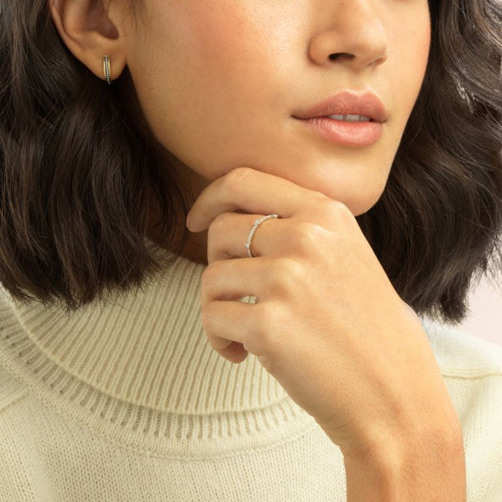 This Eternity Ring by Annoushka is a modern interpretation of a timeless design. Featuring 54 diamonds in a 0.23ct pavé, it offers minimalist brilliance with a contemporary edge. Its subtle curve and polished shape make it ideal for stacking across colors or worn solo for quiet impact.
