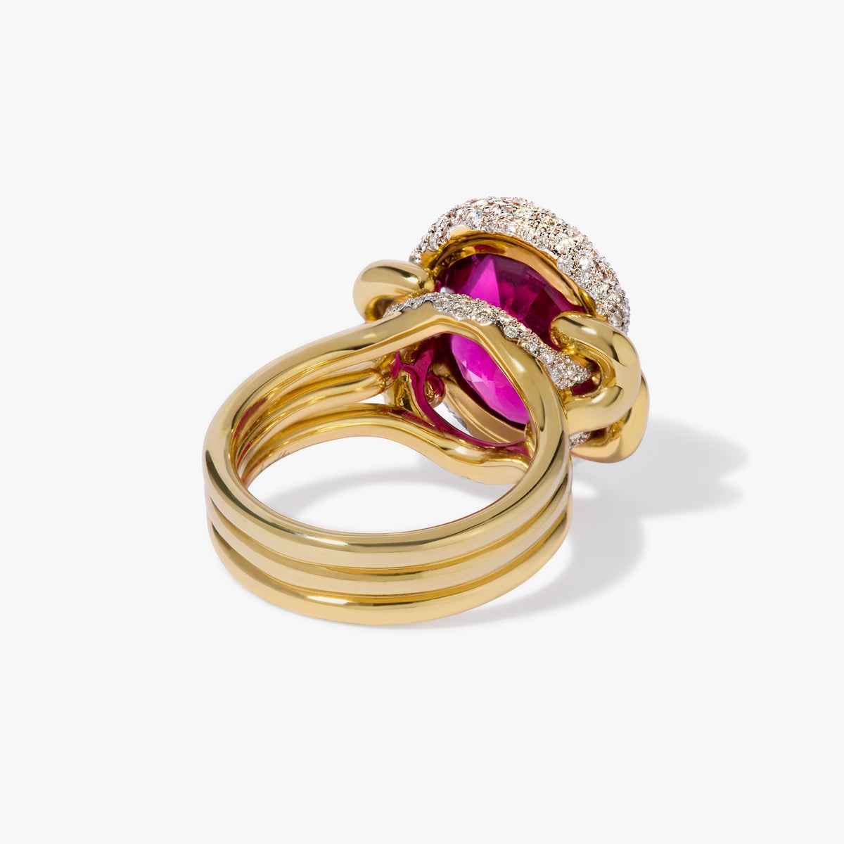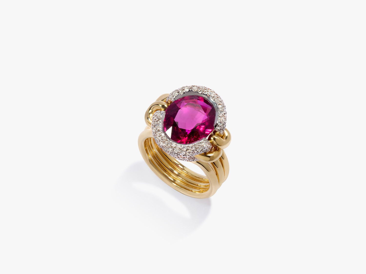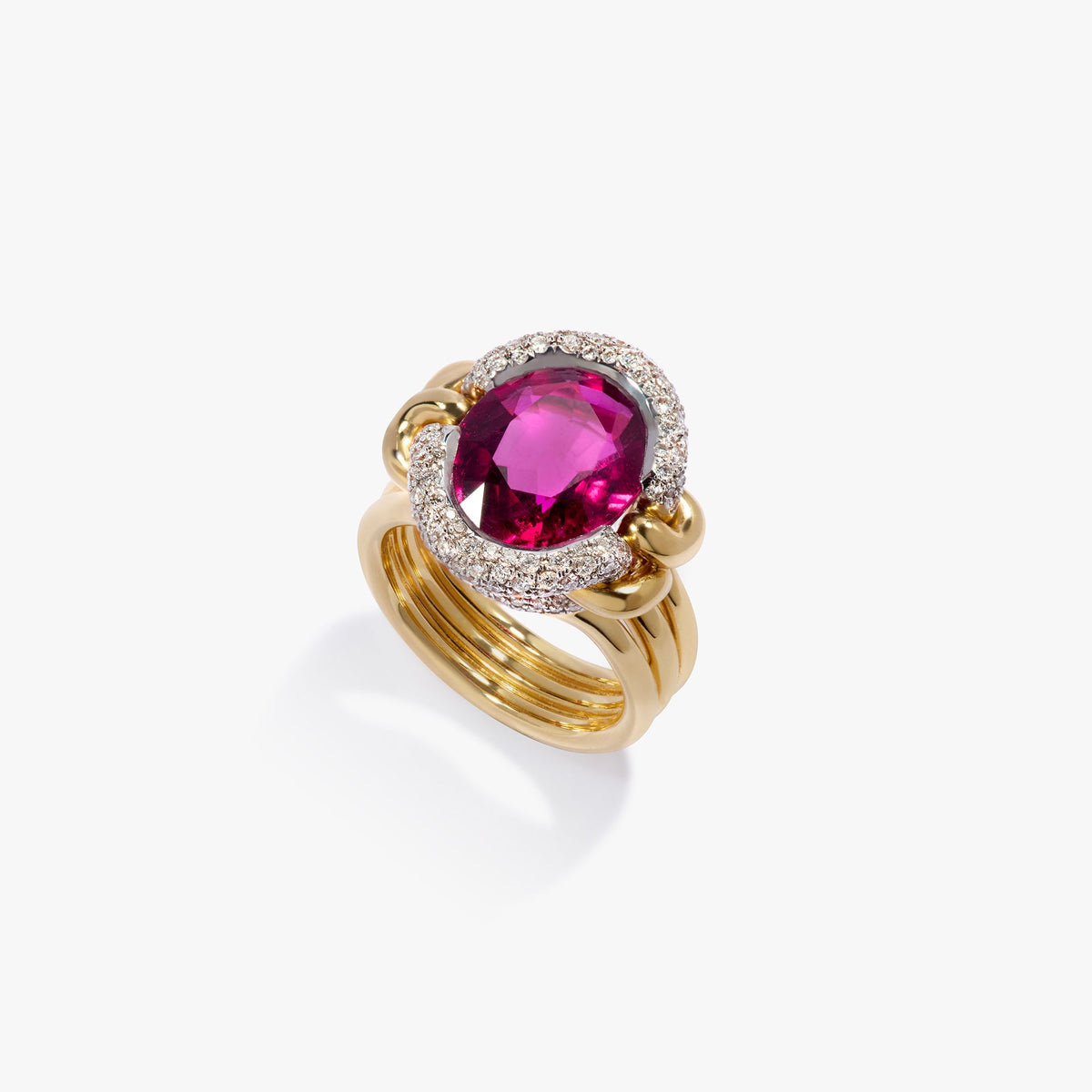 Knuckle Dust Rubellite Tourmaline & Diamond Ring