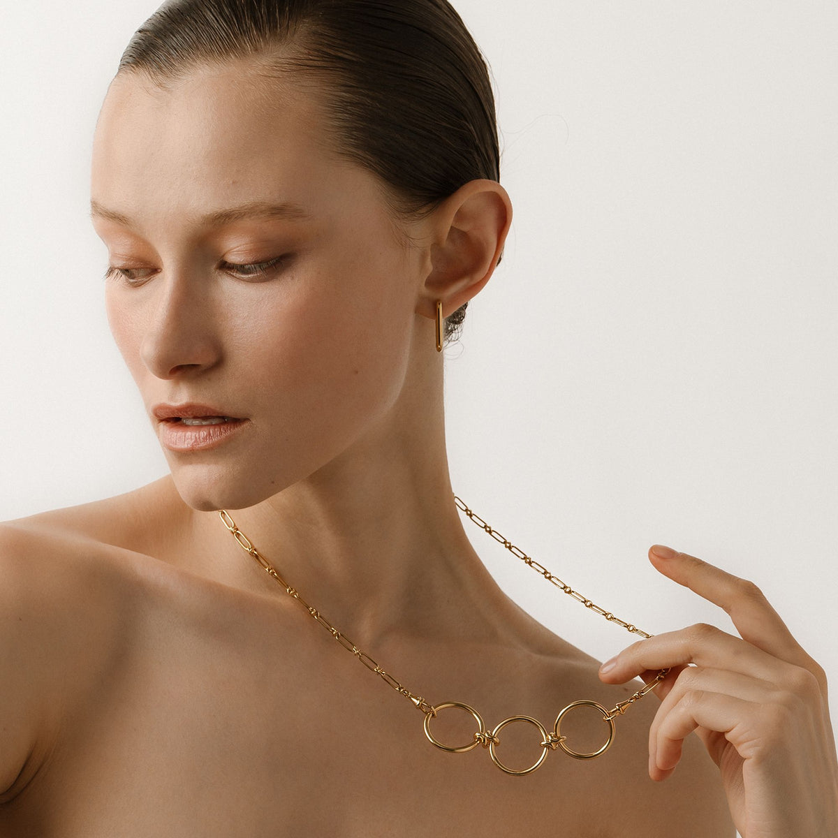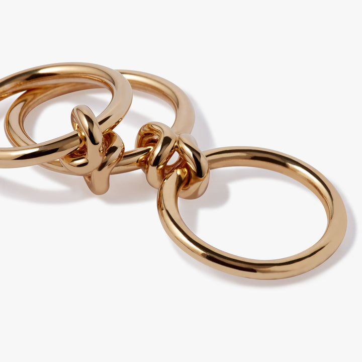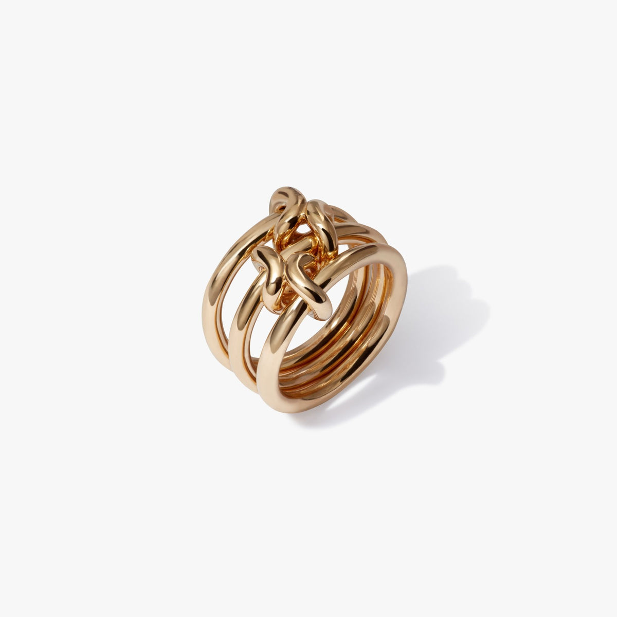 Handcrafted in 14k yellow gold. Features three articulated, interconnected bands. Made in Arezzo, Italy.