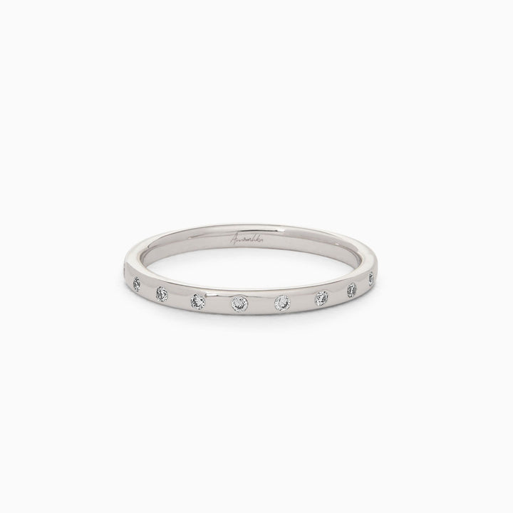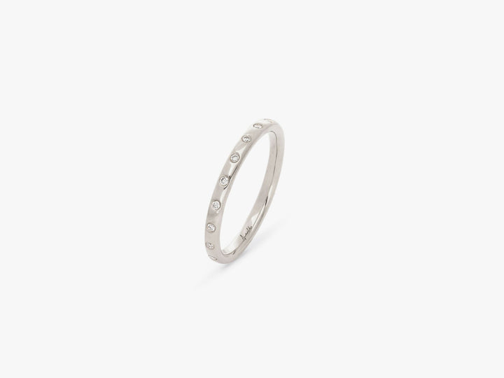 Handcrafted in 18k recycled white gold with 20 white diamonds totaling 0.19ct. Band width: 2mm.