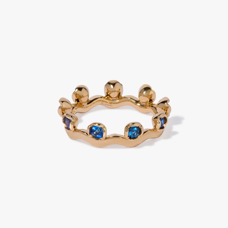 This Whoopsie Daisy Eternity Ring by Annoushka channels the delicate charm of a daisy chain through a refined and symbolic lens. Crafted in 18k yellow gold, its undulating curves are punctuated with blue sapphires—stones of wisdom and purity. The fluid, organic setting speaks to the collection’s naturalistic ethos. Perfectly stack it with other Whoopsie Daisy rings for a layered narrative.