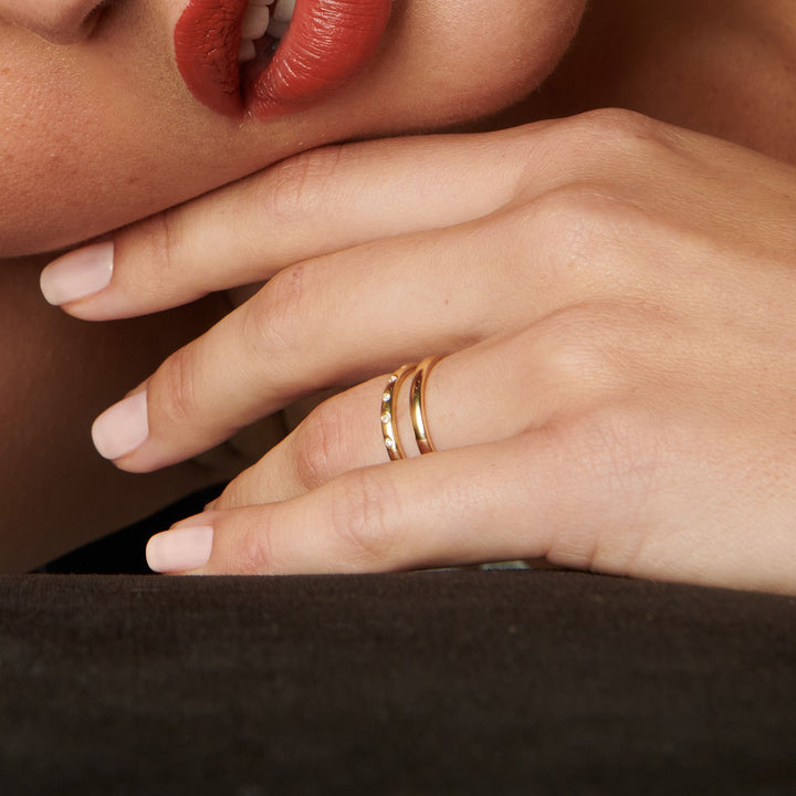 Handcrafted in 18k recycled yellow gold with 20 white diamonds totaling 0.19ct. Band width: 2mm.