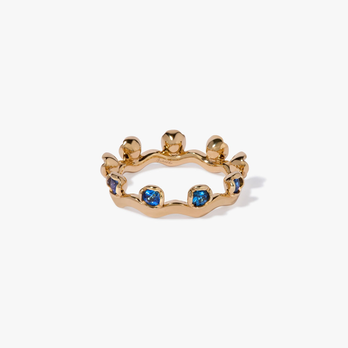 This Whoopsie Daisy Sapphire & 2mm Ring Stack by Annoushka pairs vibrant blue sapphire with a 2mm gold ring accented by a tiny ruby, symbolising love and passion. Handcrafted in 18k yellow gold with the signature organic cup setting, this stackable set captures the simplicity and beauty of a daisy chain with playful versatility.