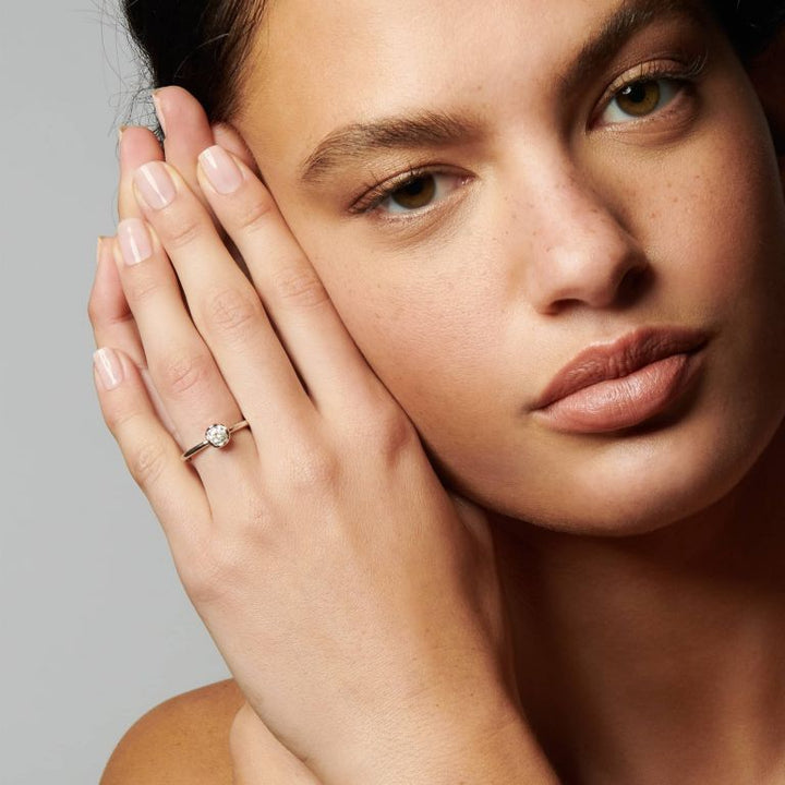 This Whoopsie Daisy Engagement Ring by Annoushka features a 0.50ct solitaire diamond set in the signature organic bezel setting, crafted from recycled 18k white gold. Designed to complement the Crown and Whoopsie Daisy collections, it offers responsible, playful elegance with a high polish finish, perfect for lifelong wear.