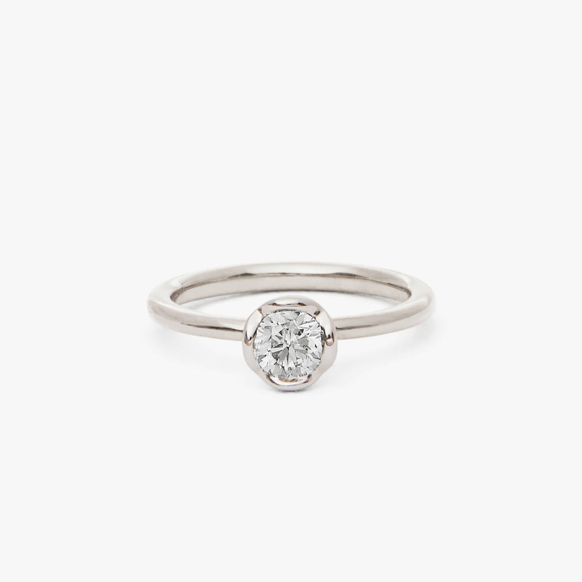 Handcrafted in recycled 18k white gold with 0.50ct diamond. Signature organic bezel setting. Engagement ring design.