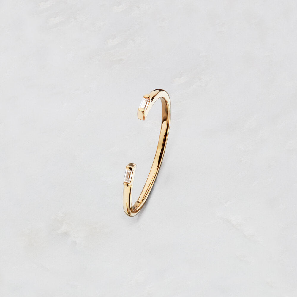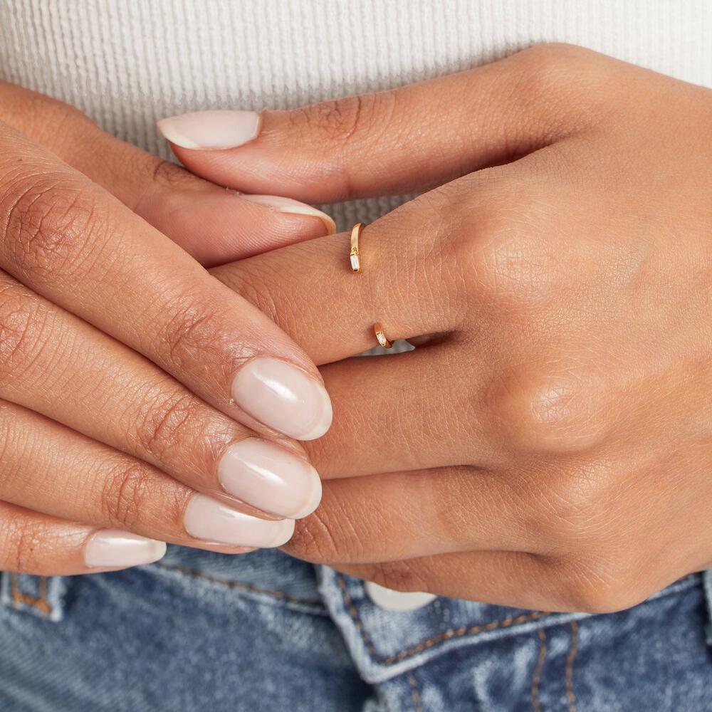 This Gold Diamond Style Baguette Gap Ring by Lily & Roo is designed to add just the right amount of sparkle to any outfit. The baguette-style crystals are set in a gap ring design, making it perfect for stacking or wearing alone. Its elegant look transitions seamlessly from day to night, elevating your style effortlessly.