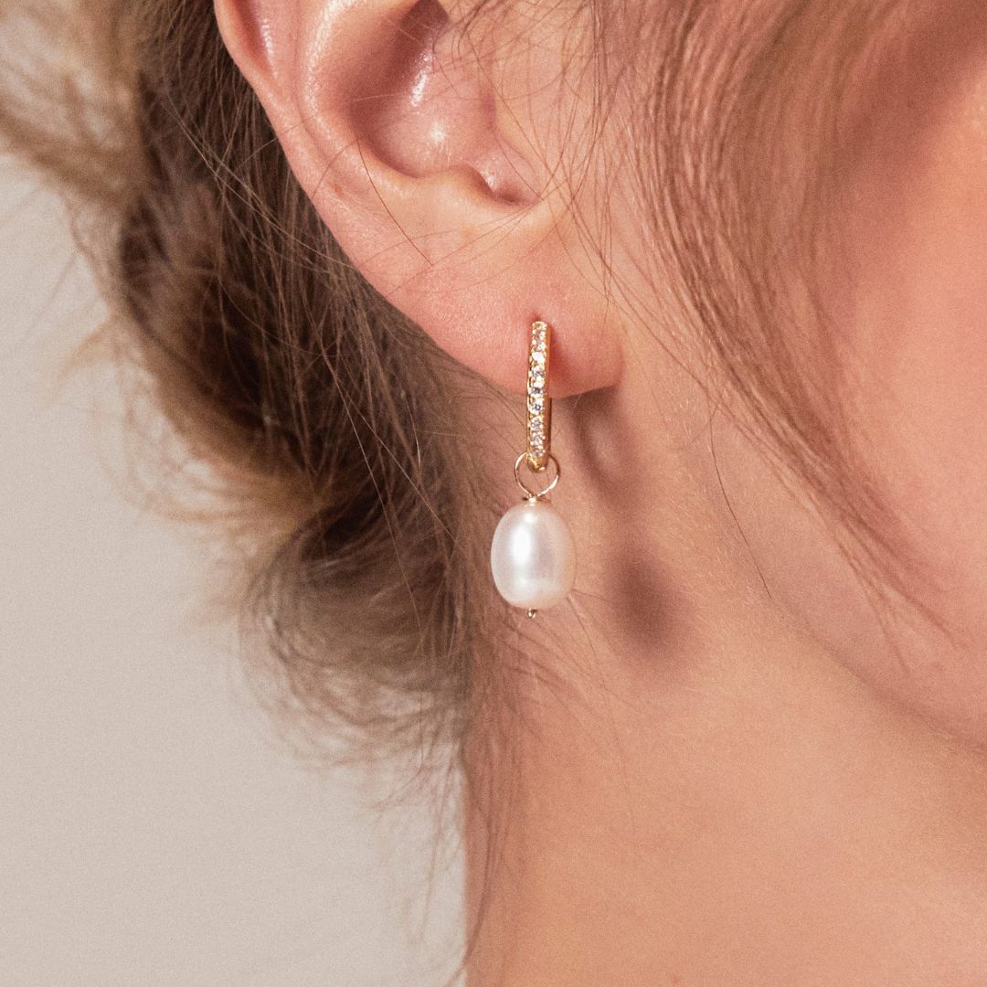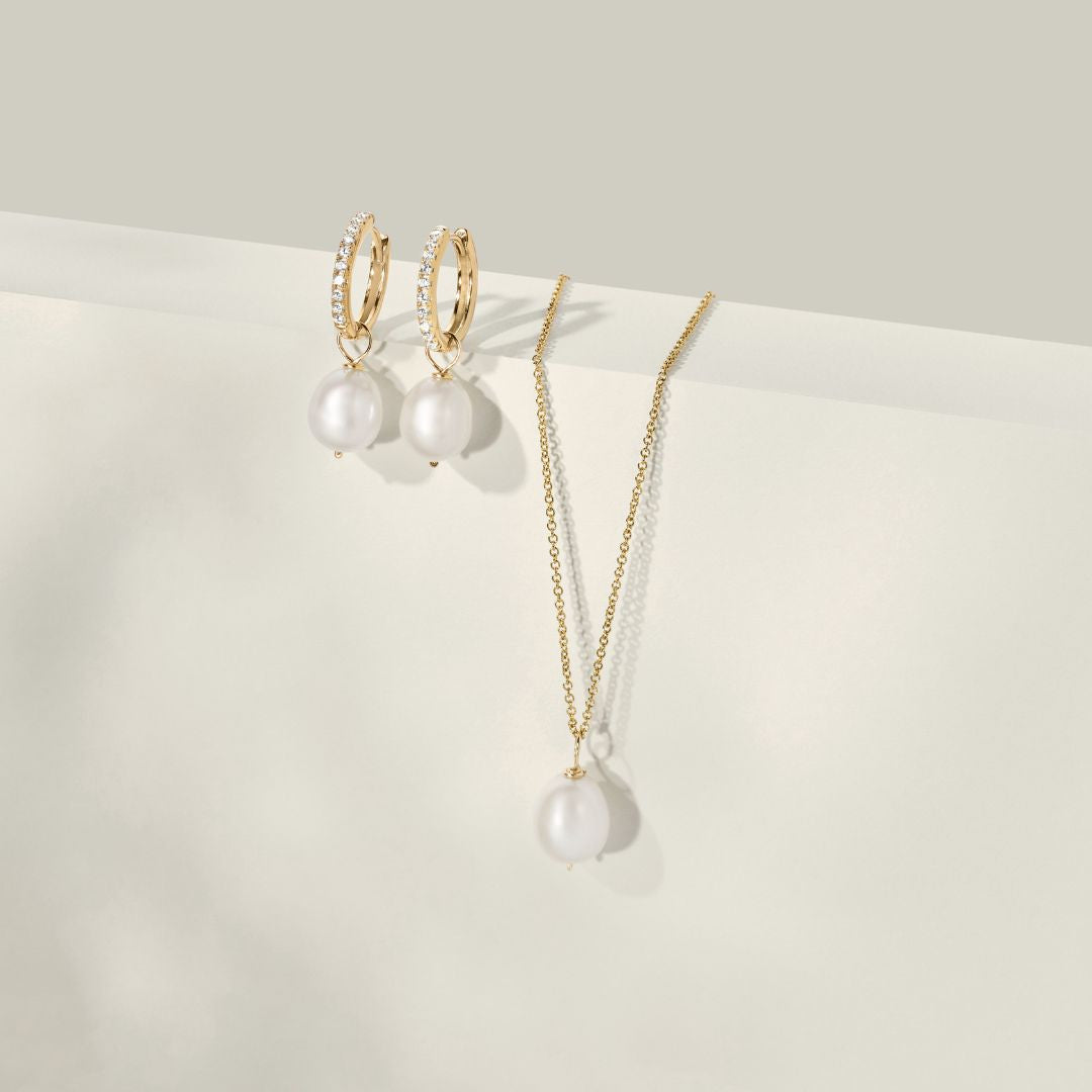 Available in solid sterling silver, 18ct gold-plated sterling silver, solid 9ct gold, or solid 9ct white gold with genuine diamonds. Featuring removable freshwater pearls.