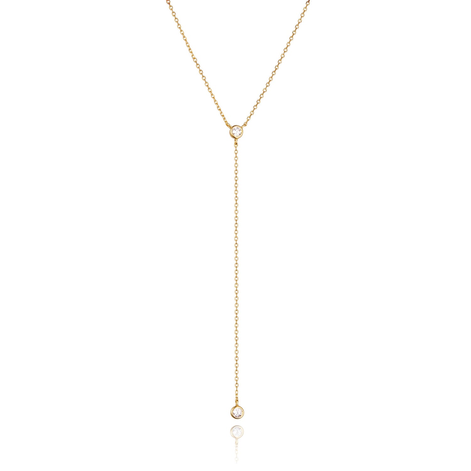 This Gold Diamond Style Lariat Necklace by Lily & Roo is a refined and sophisticated accessory that adds a touch of sparkle to any look. The lariat design features either crystals or genuine diamonds that subtly shimmer as they catch the light. Ideal for brides or bridesmaids, this necklace is perfect for creating a stunning, elegant look on any special occasion. The adjustable chain makes it suitable for a variety of necklines.