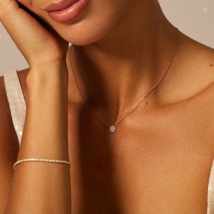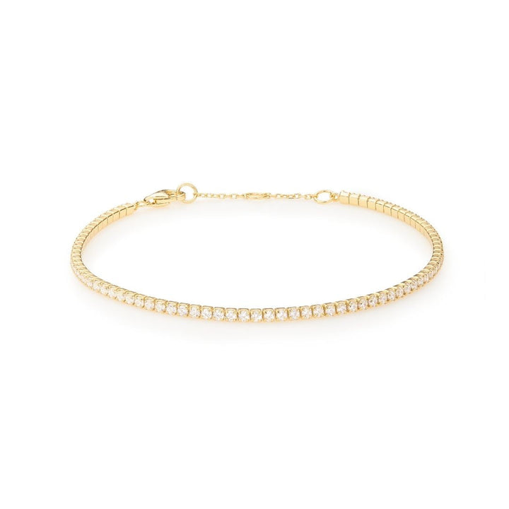 This Gold Diamond Style Tennis Bracelet by Lily & Roo is a luxurious piece that adds sparkle to any outfit. The pavé set crystals provide a brilliant shine, while the extendable chain ensures a comfortable and customizable fit. This bracelet is perfect for elevating both everyday and special occasion looks with its elegant design.